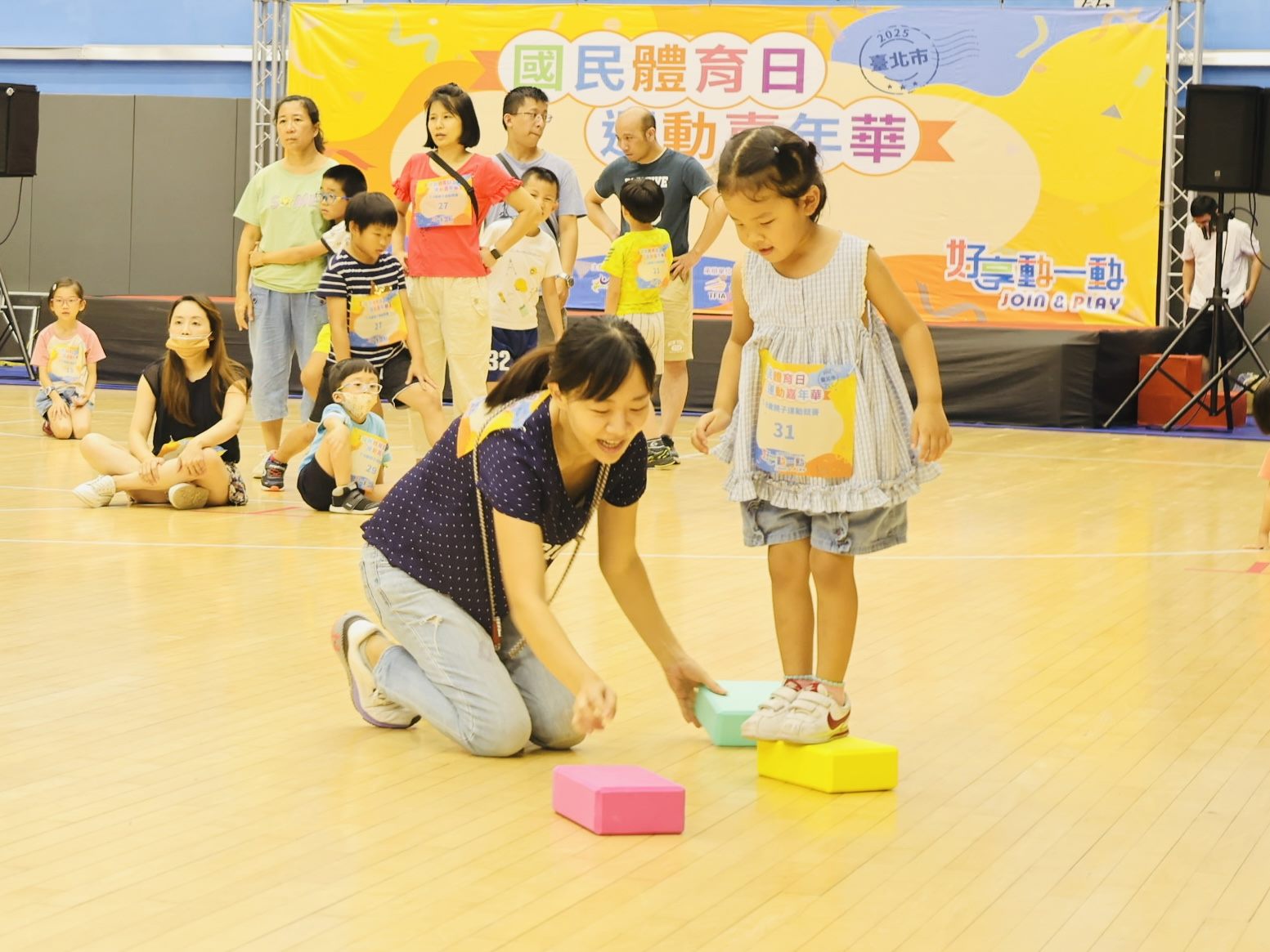 為慶祝一年一度的國民體育日,臺北市政府體育局於9月13日在臺北體育館舉行的「2025國民體育日 運動嘉年華」活動,今年活動以 「JOIN & PLAY」 為主題,結合舞台表演、運動闖關、親子趣味競賽、體適能檢測與臨托服務,打造親子參與的城市運動派對。