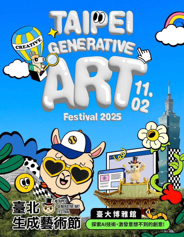 https://genartfest.taipei臺北市政府將於11月2日(日)舉辦「2025臺北生成藝術節」,本次活動將在國立臺灣大學校總區博雅教學館熱鬧登場,繼去年首度舉辦廣受好評後,今年活動再度回歸,邀請全臺創作者齊聚一堂,於限時挑戰中展現生成藝術的無限可能。