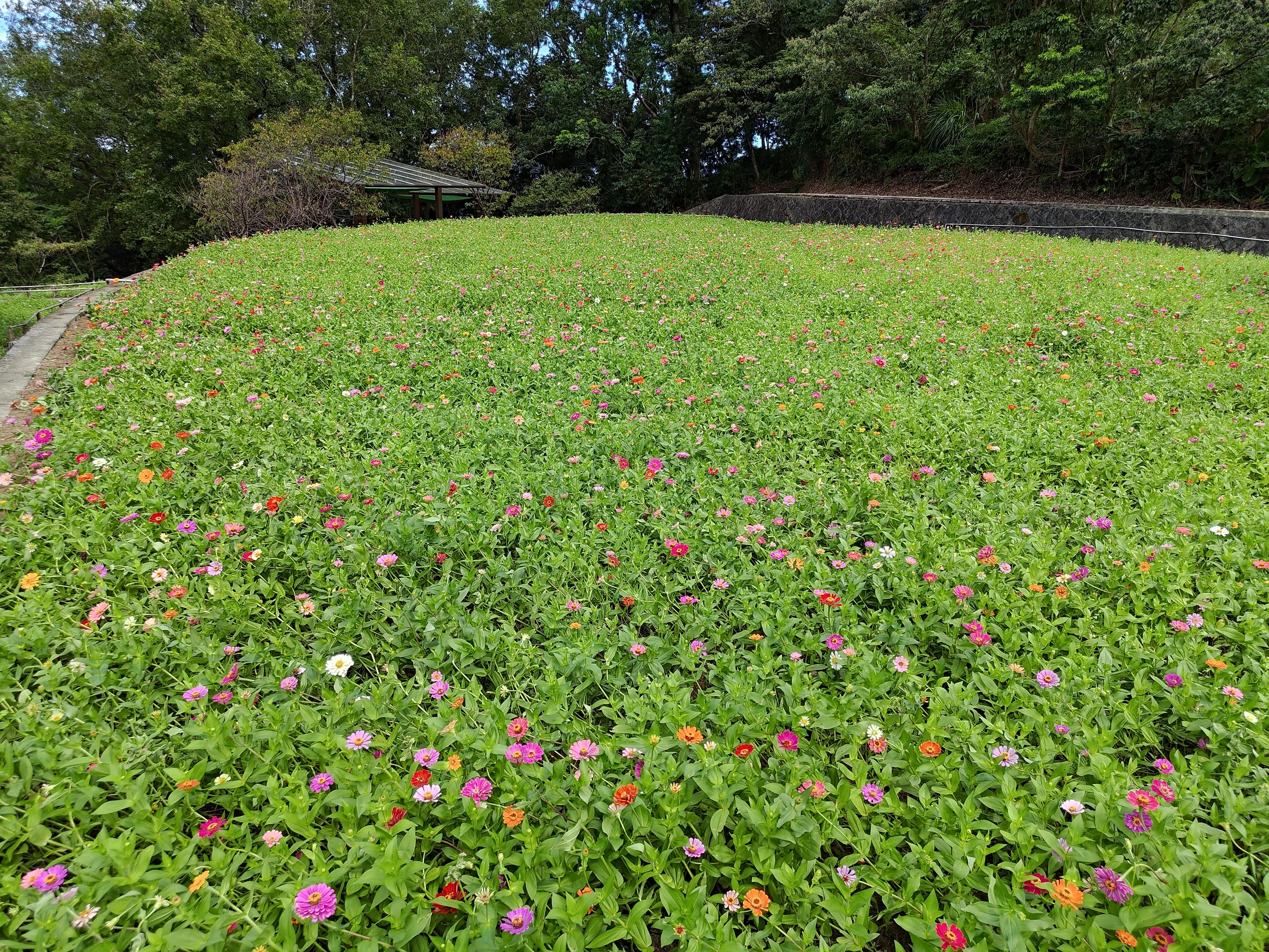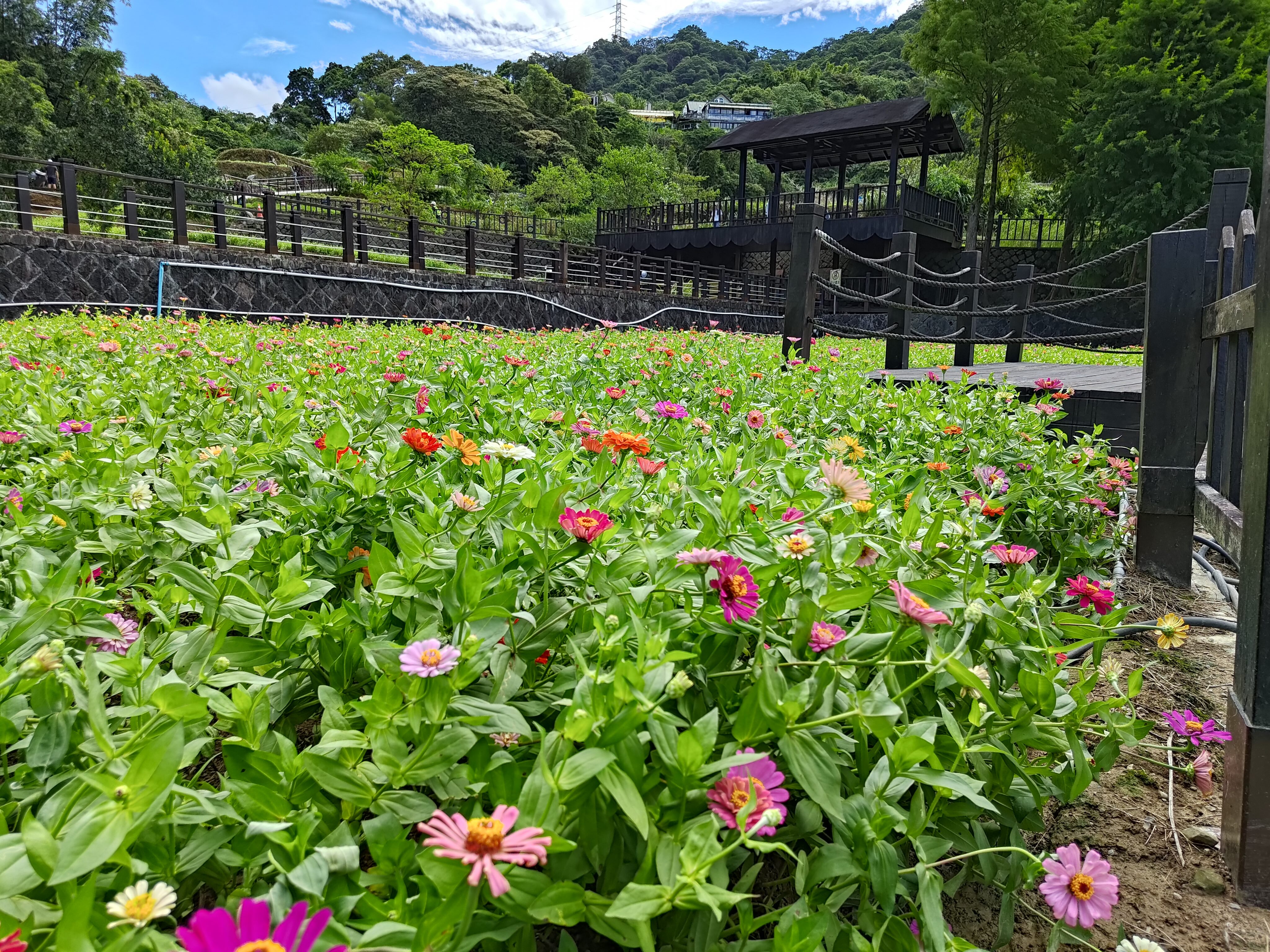 秋風徐徐,文山區的樟樹步道已悄然換上新裝,沿線的百日草花海正繽紛盛開,紅、粉、橙、紫交織的花朵,在貓空山區編織出繽紛的百日草花毯,以最柔和亮麗的色彩,迎接每一位到訪的旅客。