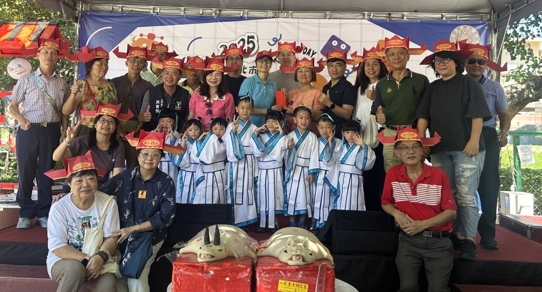 台北市大龍峒人文商圈發展促進會張賦脈理事長表示,為了讓傳統文化以更貼近生活的方式傳遞,「2025大龍峒狀元文化節」特別設計符合六藝概念的現代版闖關遊戲,將文化內涵融入趣味挑戰中,完成闖關者還可獲得榮譽證書留念;現場還有「拔金牛毛拿狀元筆」、「手作狀元帽」、「手作狀元糕」以及保安里義工媽媽傳授製作傳統美食的秘訣,希望藉由文化體驗讓民眾更認識大龍峒商圈獨有風貌,持續發揚在地文化精神。此外,在六藝廣場入口更設置以蔥和芹菜裝飾、象徵智慧與勤奮的「狀元聰明門」,寓意著走過聰明門,就像獲得好運與聰明才智;活動結束後,妝點的綠色植栽也分送給現場參與民眾,展現文化加值環保理念的巧思,為活動留下更深刻的意義。