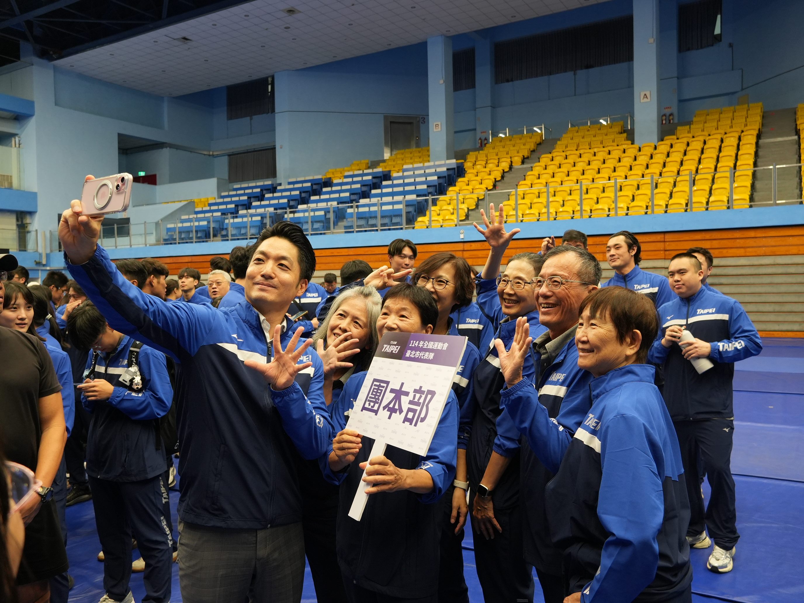 蔣萬安市長在授旗典禮中勉勵全體選手:「臺北市代表隊承載著市民的期待與榮耀,每位選手的努力與拚搏,都是臺北精神最真實的展現。希望大家能以團隊為後盾、以榮耀為目標,在賽場上全力以赴,不僅突破自我,也再次把最高榮耀帶回臺北。」