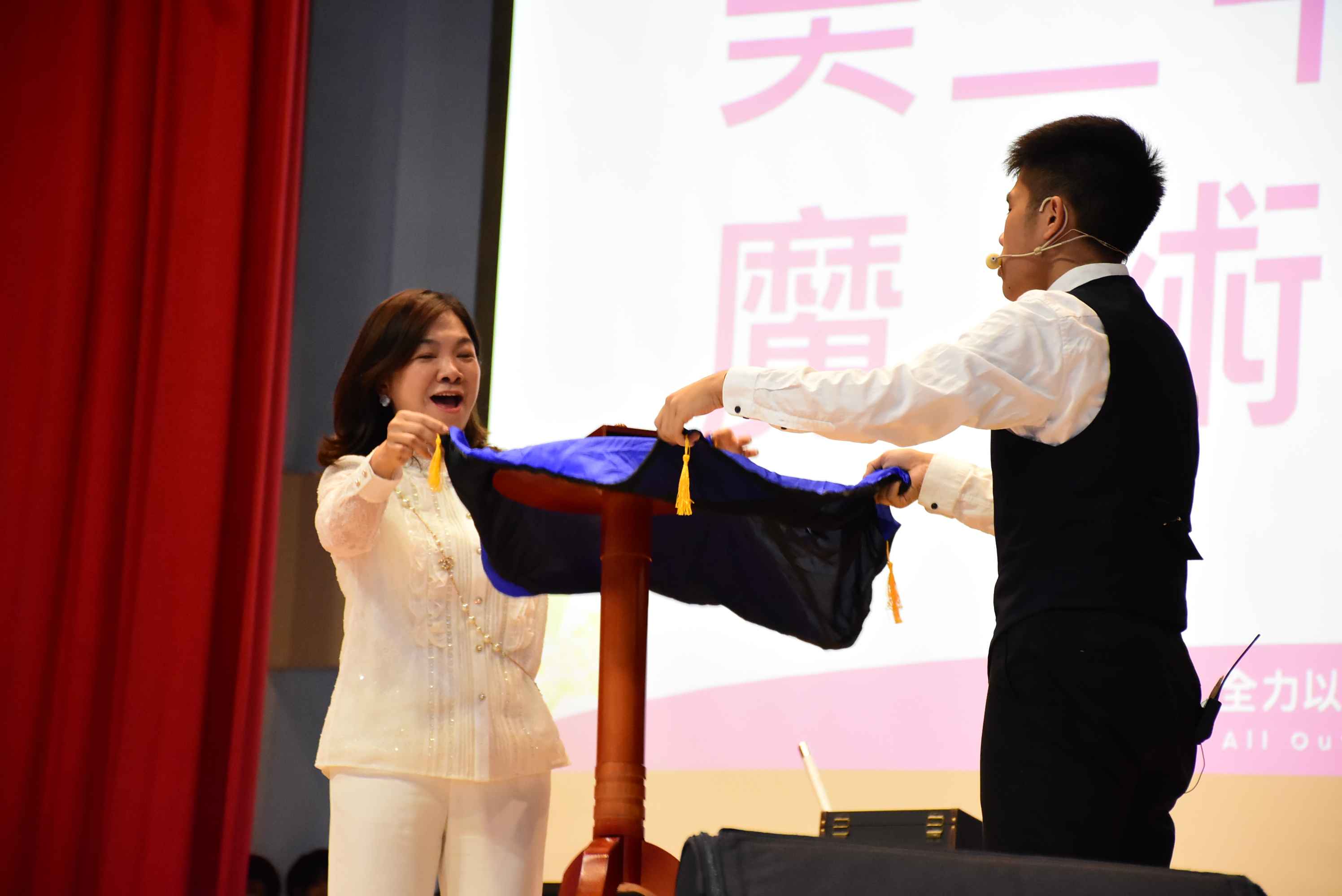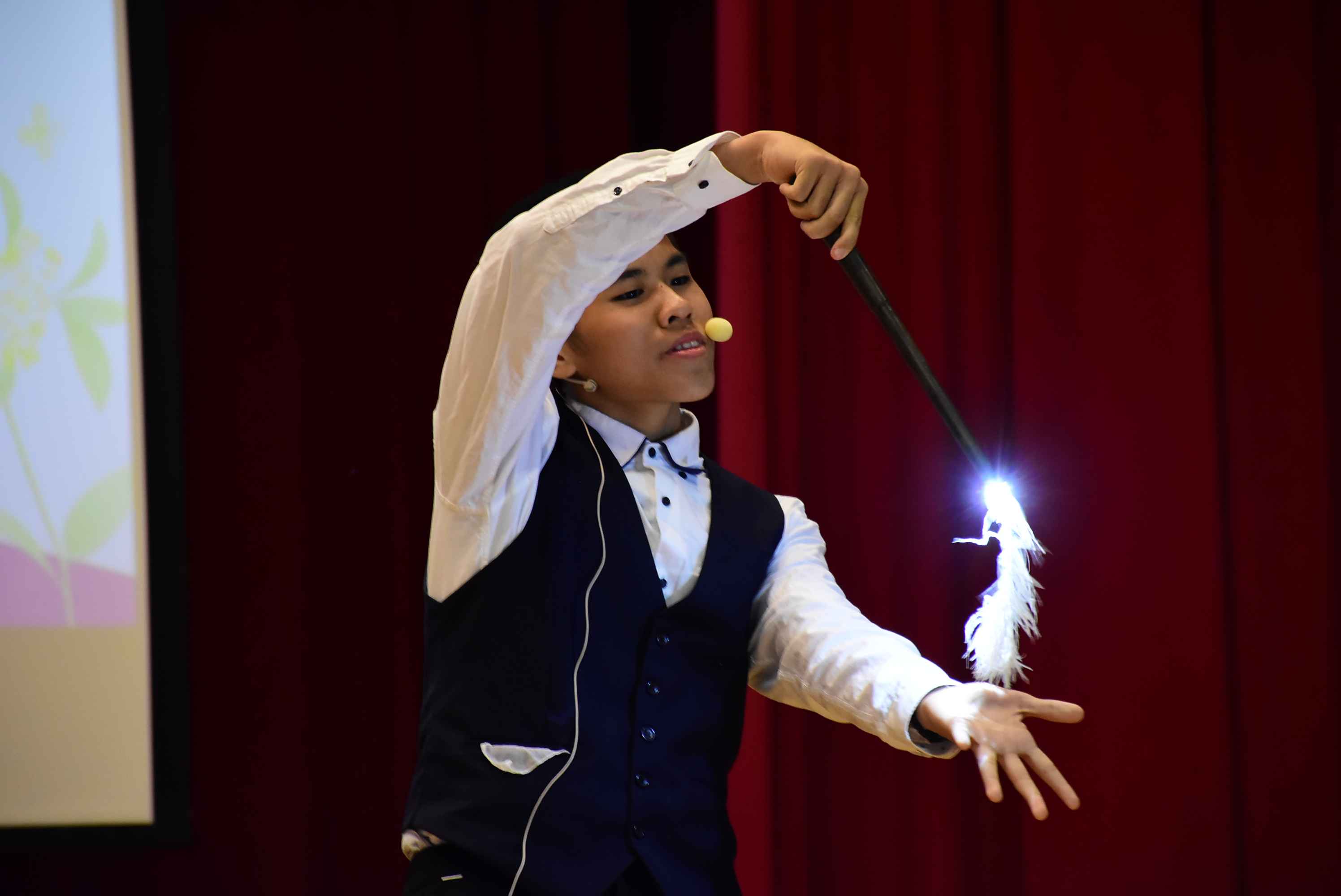 活動的開場,由美二甲班傅允晨同學帶來了十分專業且令人歎為觀止的魔術表演,魔術表演的預備過程,就像老師們日常的每一個叮嚀,每一句傳授,終有一日在學生身上產生了魔術般的影響與成長。隨著演出末了象徵夢想的白鴿飛起,彷彿泰北成就每一個孩子,協助孩子們的夢想起飛。