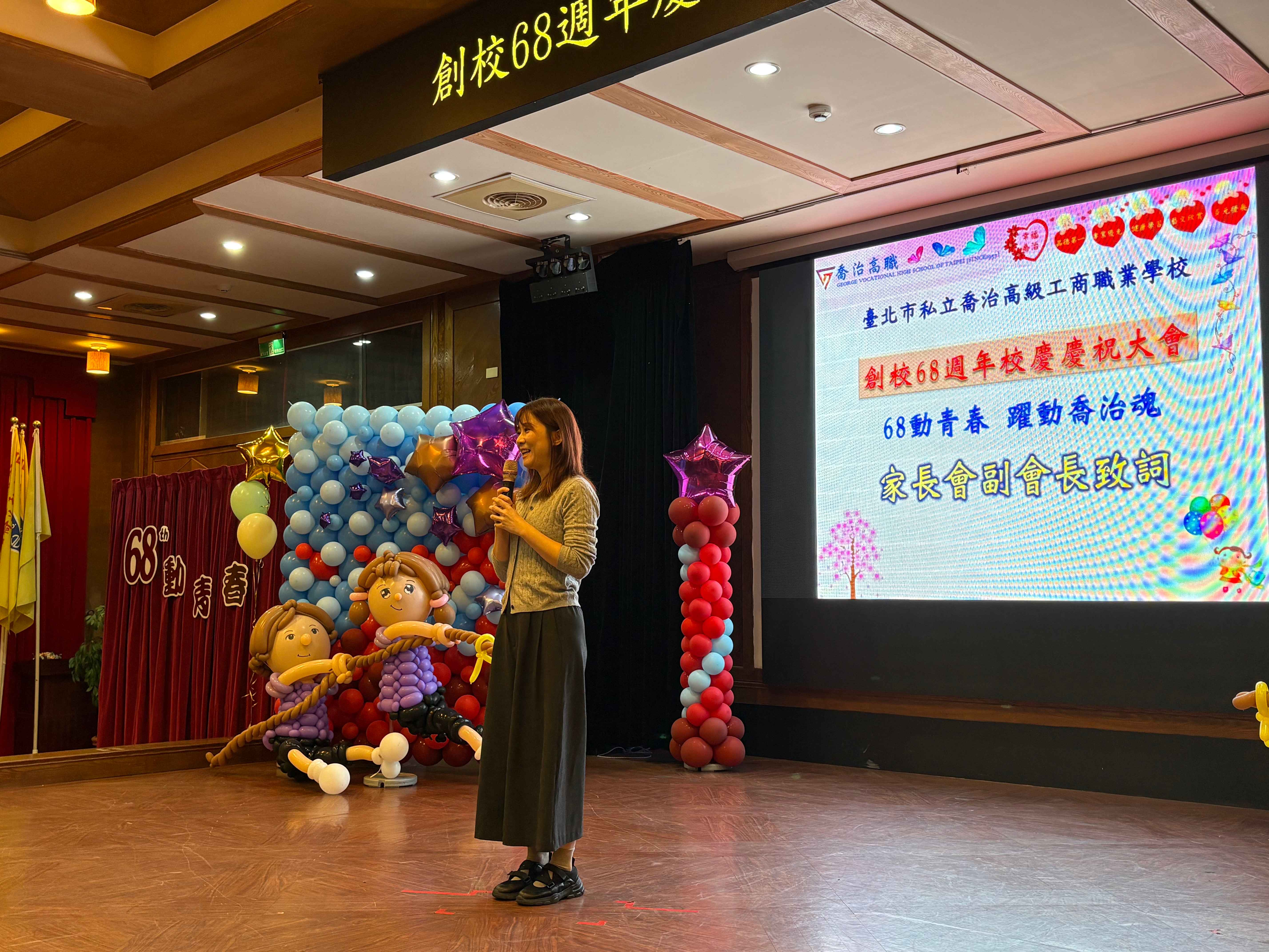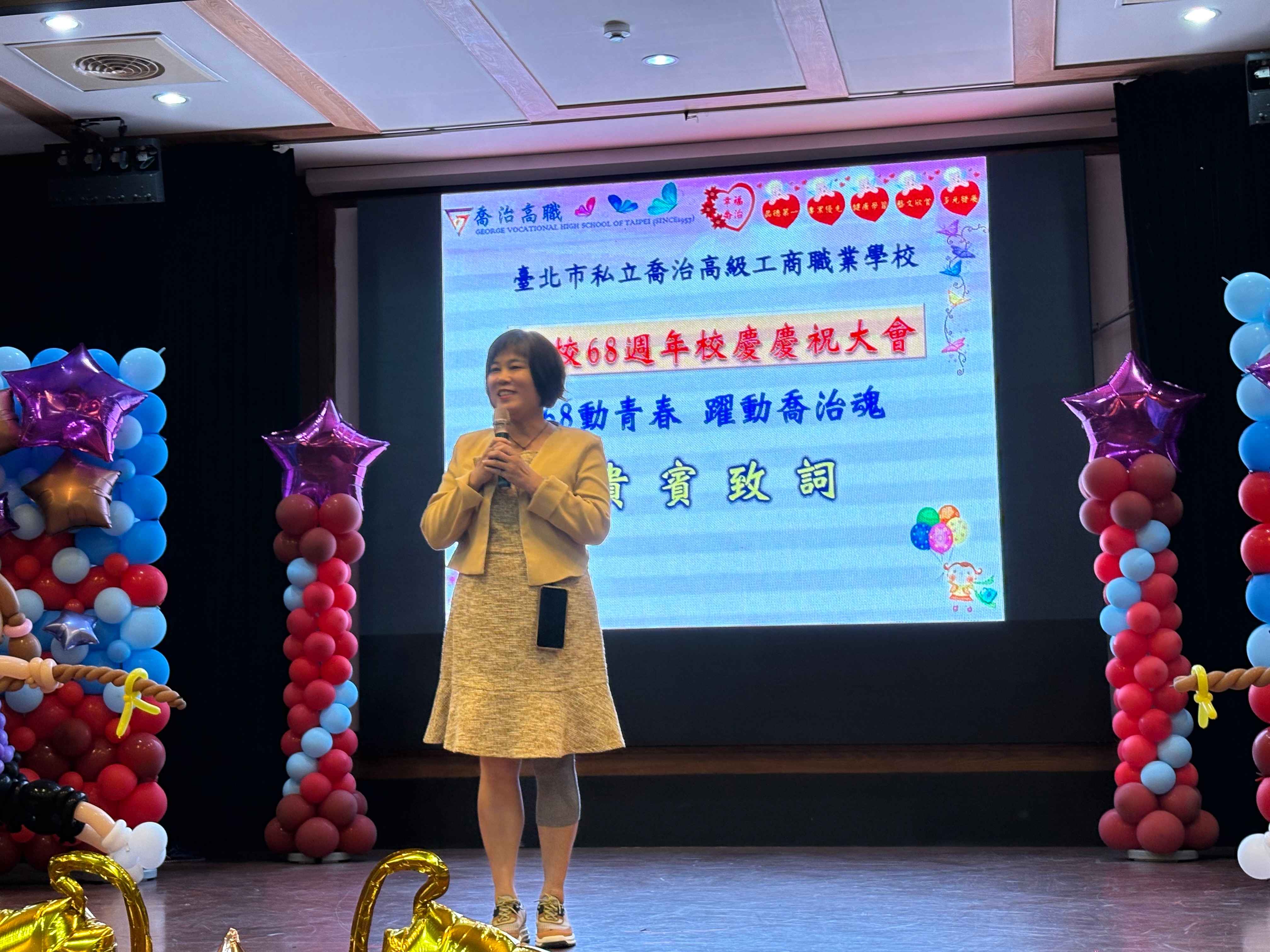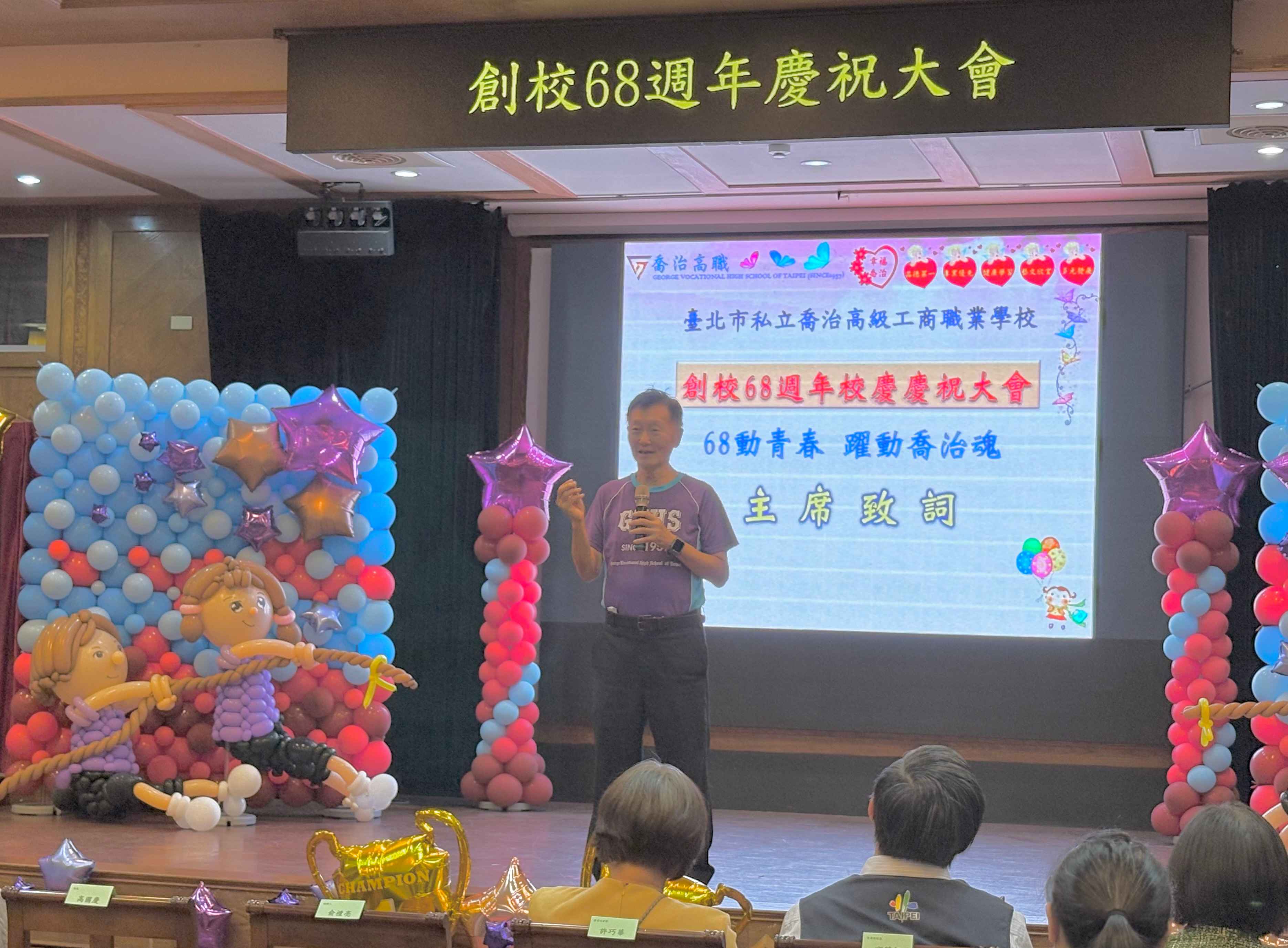 慶祝大會盛況空前,教育局許巧華督學、信義區方英祖區長、大安區黃光慧課長等、教育界及產業界貴賓皆親臨致賀,場面溫馨隆重。創辦人俞禮亮博士、俞禮正董事長、再次回顧報告喬治68年前響應政府私人興學教育振興國力的號召,培育國家棟樑。高校長更是發表年度成果報告,分享師生在技能競賽、升學成果及多元課程發展的亮眼成績。家長會李雁婷副會長展現喬治家長會的熱情熱力,更鼓勵學子學有所成,要感恩回饋。當悠揚校歌響起,全體師生與貴賓圍繞著校慶蛋糕齊唱生日快樂,場面溫馨感人,象徵喬治精神的傳承與再啟航。