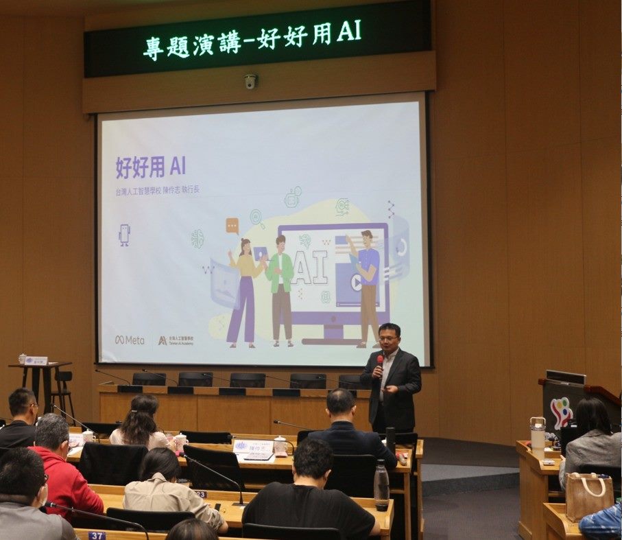 公訓處在今年9月3日代表市府與台灣人工智慧學校簽署「負責任使用AI素養推廣計畫」的合作備忘錄,因此,本場活動特別邀請陳伶志執行長以「好好用AI」為題進行專題演講。陳執行長特別強調,在生成式AI快速發展的時代,惟有瞭解到使用AI的原理及風險、挑選合適的工具、正確的使用AI、審慎地分享AI的內容並且主動回饋AI使用者經驗,才是負責任使用AI的態度。生成式AI是時代的火車,而我們,可以一起決定開往何處。
