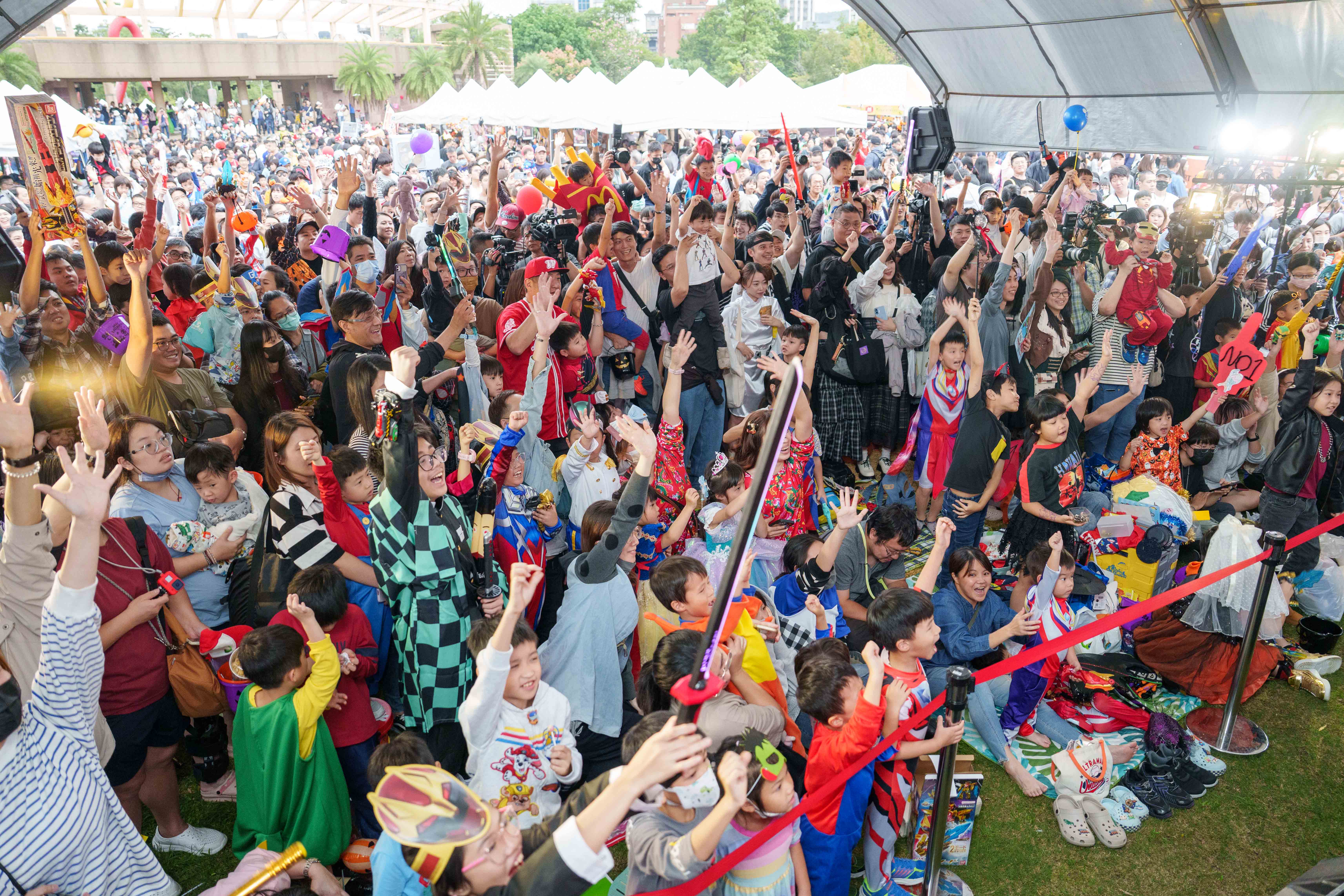 蔣萬安市長今(1)日驚喜現身「天母搞什麼鬼」萬聖節嘉年華,化身為人氣 Kpop 獵魔女團「Saja Boys」的Abby與現場民眾掀起活動高潮!