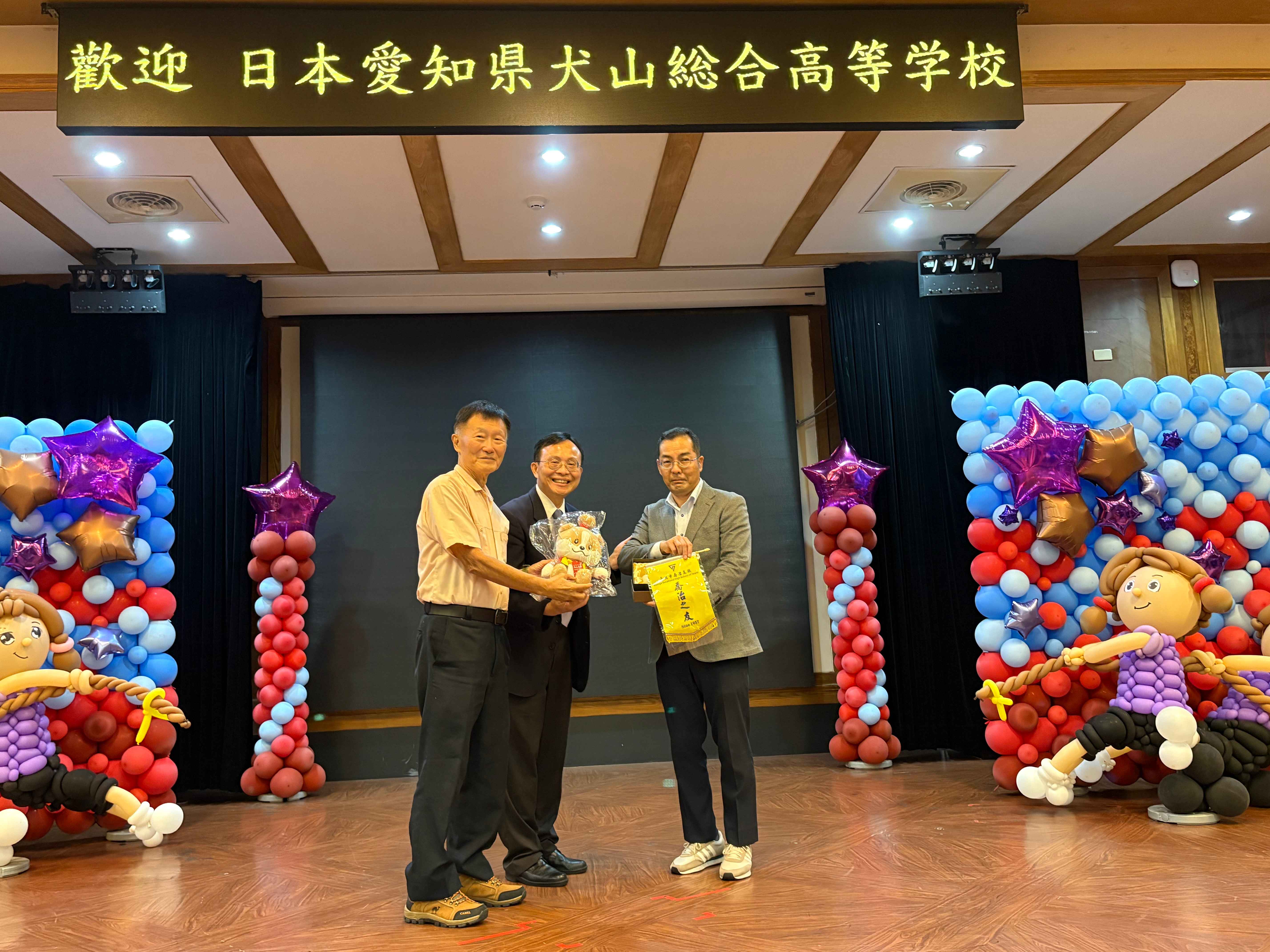 由於本校接待國際教育高校師生經驗豐富,犬山総合高校師生瞬間已沉浸式融入喬治友善校園。交流活動由喬治高職高國慶校長致詞歡迎並以喬治高職辦學特色報告臺灣技職教育的優勢及驕傲;接著日方高校濵子記行(HAMAKO NORIYUKI)校長致詞並感謝本校接待,接著校長介紹犬山総合高校8位學生一一介紹學校特色課程與學生成就;雙方學校互贈禮物並開心大合照!