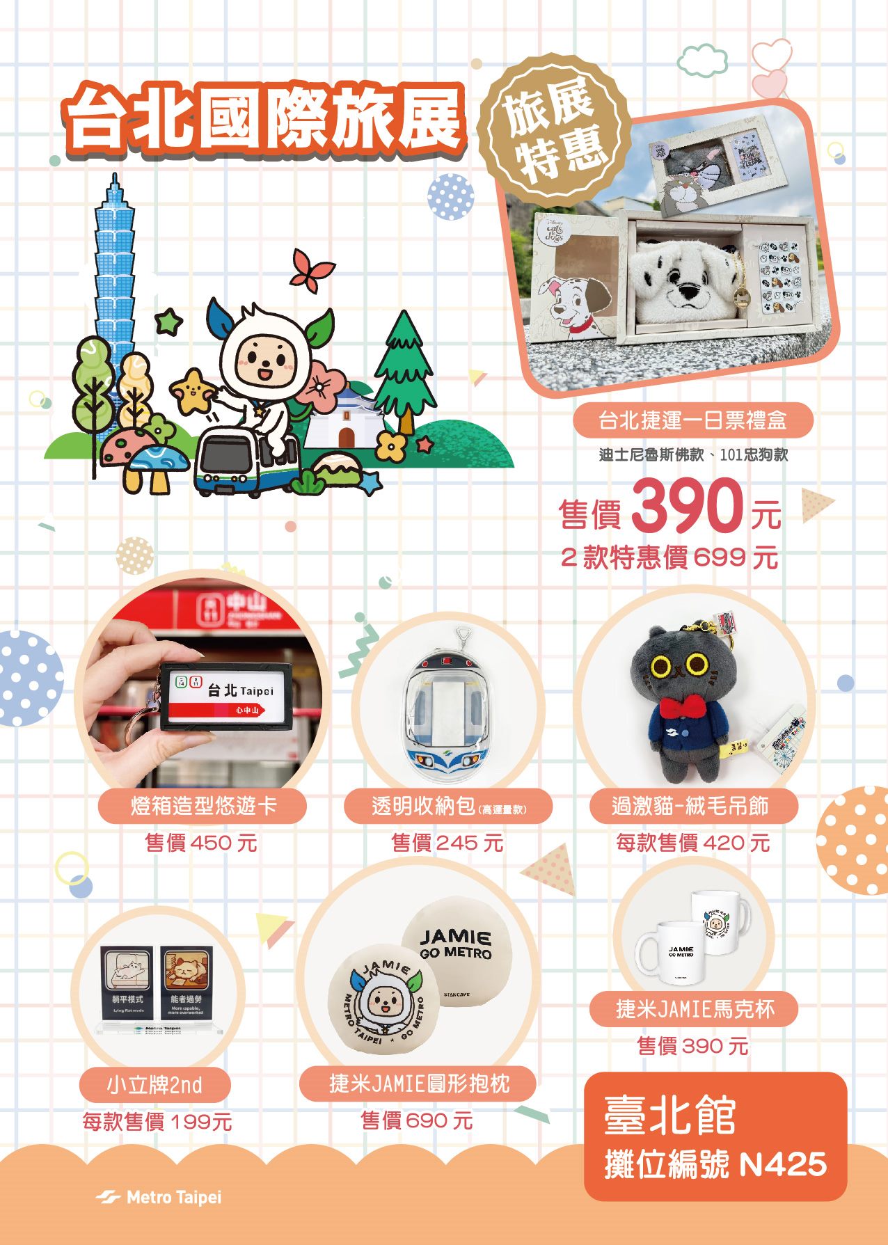 凡搭乘臺北捷運前往旅展的民眾,在北捷攤位出示當日臺北捷運乘車紀錄,可獲得捷運點數20點,每日限量250名,送完為止。