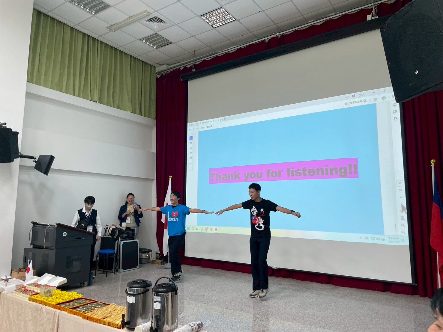 活動尾聲由本校學生擔任主持,運用Kahoot即時反饋互動平台進行「今日課程回顧與心得分享」,在輕鬆愉快的氣氛中,大家一同回顧充實的一天。韓國江北中學的師長表示,感受到臺灣學校的熱情與用心,期待未來雙方持續深化交流。日本大館國際情報學校的學生表示,他們非常開心有這樣的機會可以來到三民國中交流,和本校同學一起度過快樂的時光。