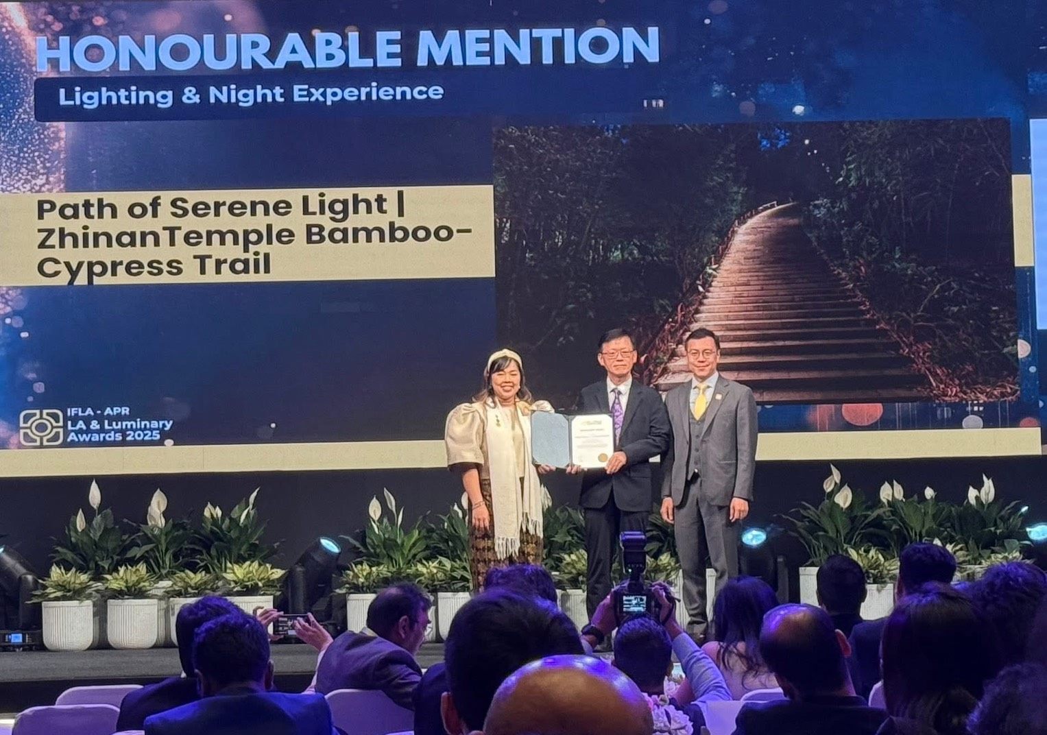 「世界景觀建築師協會五區(非洲、美洲、中東、亞太、歐洲)聯合景觀大賞,為景觀設計界具最高榮譽與指標性的國際獎項,亞太地區由14個國家組成(IFLA-APR LA Awards 2025)」,今年於11月14日印度孟買舉行頒獎典禮。