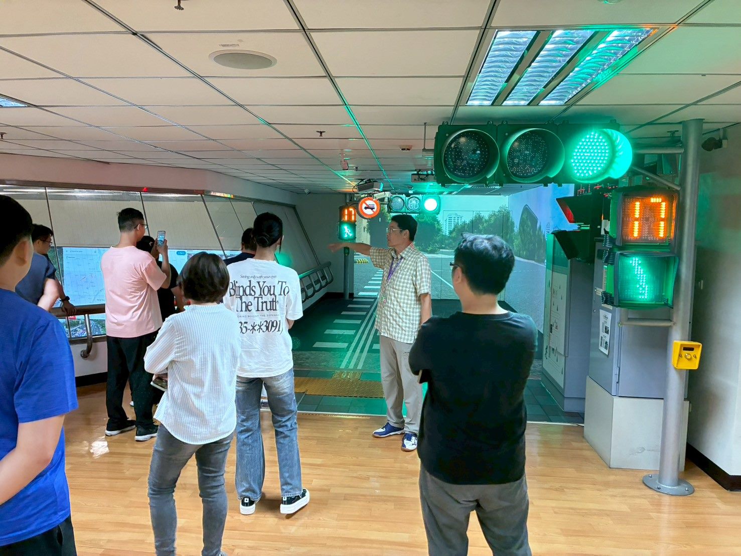 除了國小階段有交安體驗區,臺北市教育局也擴大交通安全教育的層面,讓交安教育走進科技場域。今年的臺北市國中交通安全教育觀摩研習由內湖國中與福安國中聯合主辦,首度將學習場域延伸至「臺北市交通資訊中心」,帶領全市國中交通安全業務承辦教師,親身體驗智慧交通系統的運作。在研習中,教師們透過實際參與紅綠燈號誌互動、低地板公車乘坐體驗、微笑單車騎乘遊戲與模擬公車駕駛等活動,深入理解城市交通控制的邏輯與智慧化發展。這不僅讓教師掌握第一手的交通教育資源,也讓臺北市的交通安全教育從「教室」延伸到「城市現場」,建立起理論與實作兼具的教學典範,更形塑出教師間互相觀摩、持續精進的交安學習共同體。