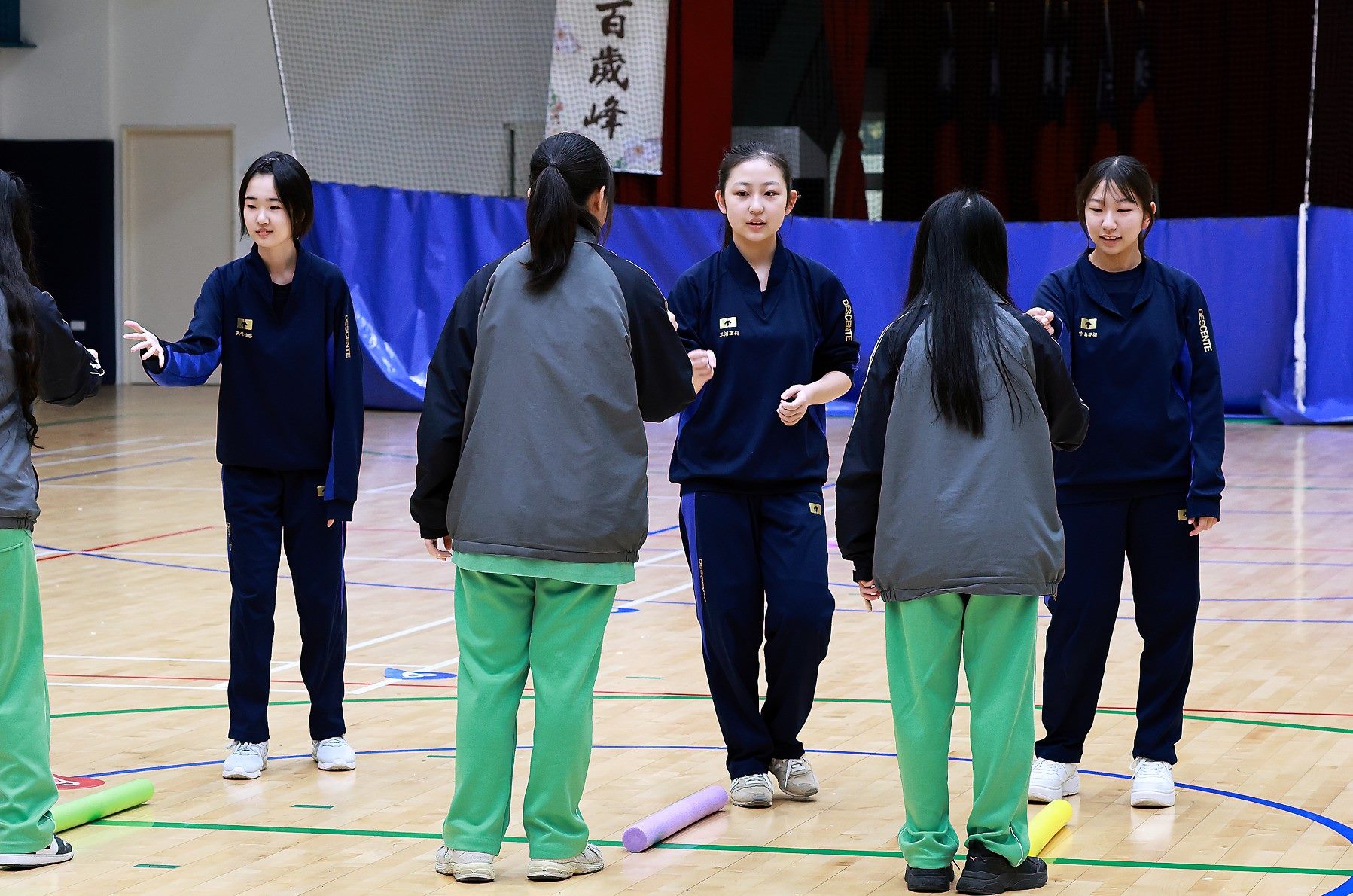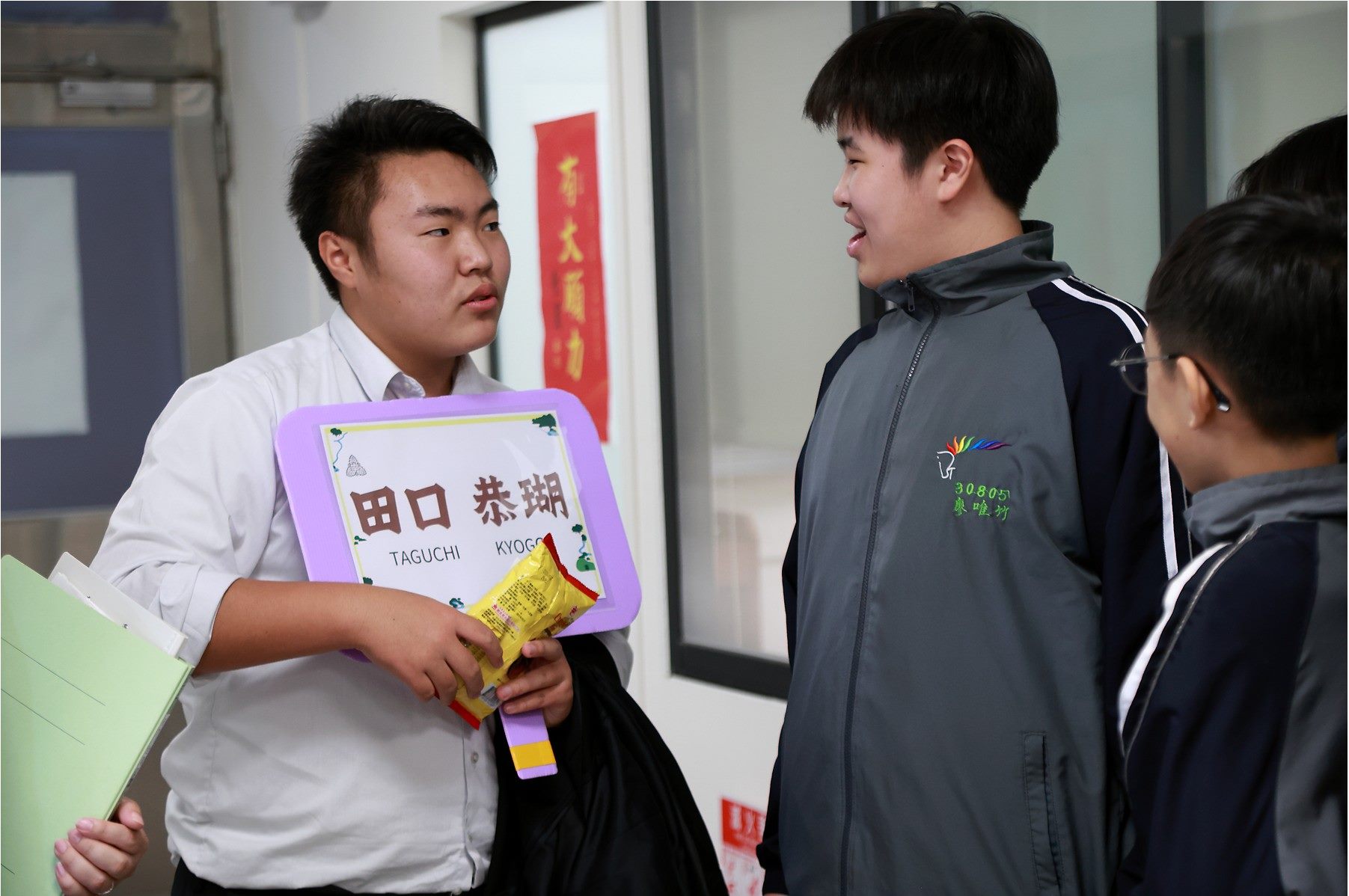 最令學生期待的課程交流更是笑聲滿滿。日方學生分別進入資訊科技、體育、英語與表演藝術課,真切地參與北投國中的教學活動。有的因體育課的團體運動露出燦爛笑容,有的在英語對話中認識各國不同的糖果,也有人在資訊課裡驚呼科技操作的新奇。教室裡的每一次專注、每一次互動,都是文化交流最動人的證明。而在一對一的學生交流時間裡,小紀念品在桌面間交換,語言雖不同,心意卻相通。那一幕幕羞澀的自我介紹、溫暖的握手與笑容,成為今日最令人難忘的畫面。