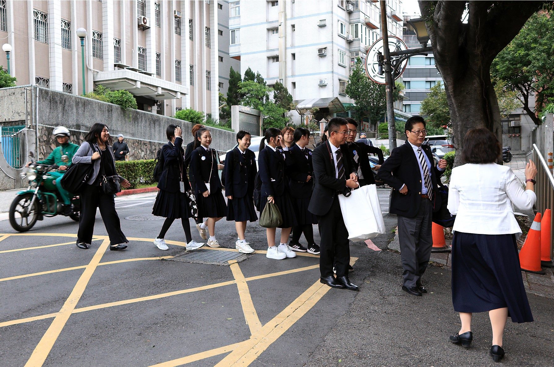【臺北報導】在微涼而明亮的秋日早晨,北投國中校門口洋溢著久別重逢般的悸動。自 2019年締結姐妹校後,北投國中與日本秋田縣生保內中學每年皆以線上視訊互動,跨國友誼在螢幕裡延續了六年。今年,這段關係終於迎來最珍貴的實體相見。當日本秋田縣仙北市教育委員會須田喬教育長及生保內中學鈴木徹校長及七名師生踏入校園時,本校校長、教師會會長、家長會長與各處室主任已列隊迎接。學生熱情揮手、快門聲此起彼落,記錄下這從線上走向真實的歷史時刻。