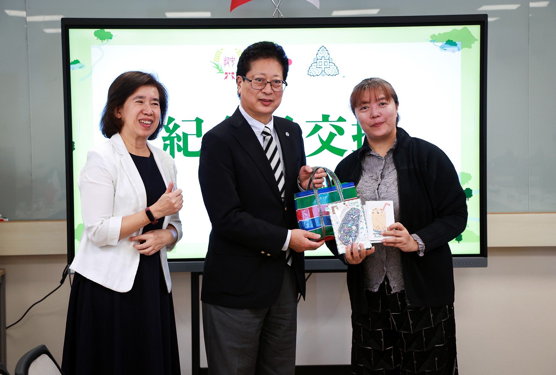 日方師生在引導下漫步校園,穿過古樹迴廊、圖書館、歷史光廊與校史室,從校園景緻中感受北投國中的文化底蘊。隨後於三樓大會議室進行的座談會溫馨而隆重,仙北市教育長與雙方校長以真摯致詞回顧六年線上交流的成果,也為首次實地相見獻上祝福。兩校互相介紹、交換紀念品,會場中洋溢著真誠而溫暖的跨國情誼。