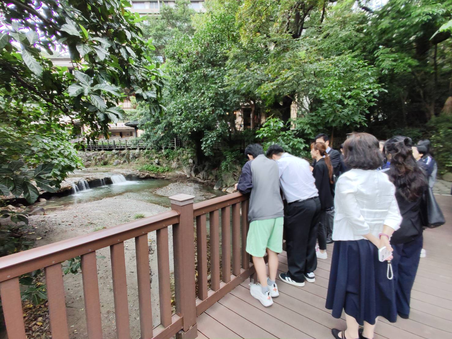 午餐後的文化走讀更將交流推向另一個高峰。兩校師生一同步行前往新北投車站、天狗庵史蹟公園與北投溫泉博物館,從老車站的復古木構、天狗庵超過120年歷史的卵石石階,到溫泉博物館蘊含在地文化的故事,生保內中學師生一路驚嘆、不停拍照,為這段跨國旅程留下珍貴記錄。