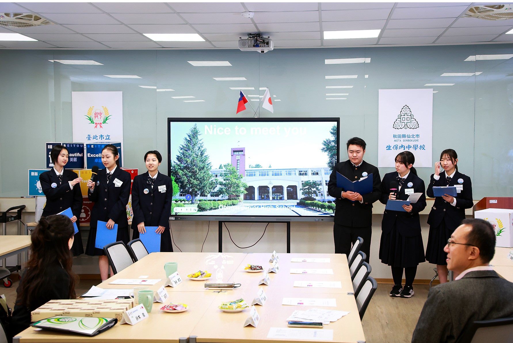 仙北市教育委員會須田喬教育長在致詞中說:「自2019年臺北市立北投國中與仙北市立生保內國中締結姊妹校後,雖因新冠疫情無法互相往來,但雙方教師與學生持續努力推動線上交流。透過集思廣益,反而深化兩校間的友好關係。如今世界充滿混亂的國際報導,我們更需要採取行動建構和平,而踏向和平的第一步就是孩子們之間的交流。我相信,兩校之間的互動必定能成為促進世界和平的一份力量。」