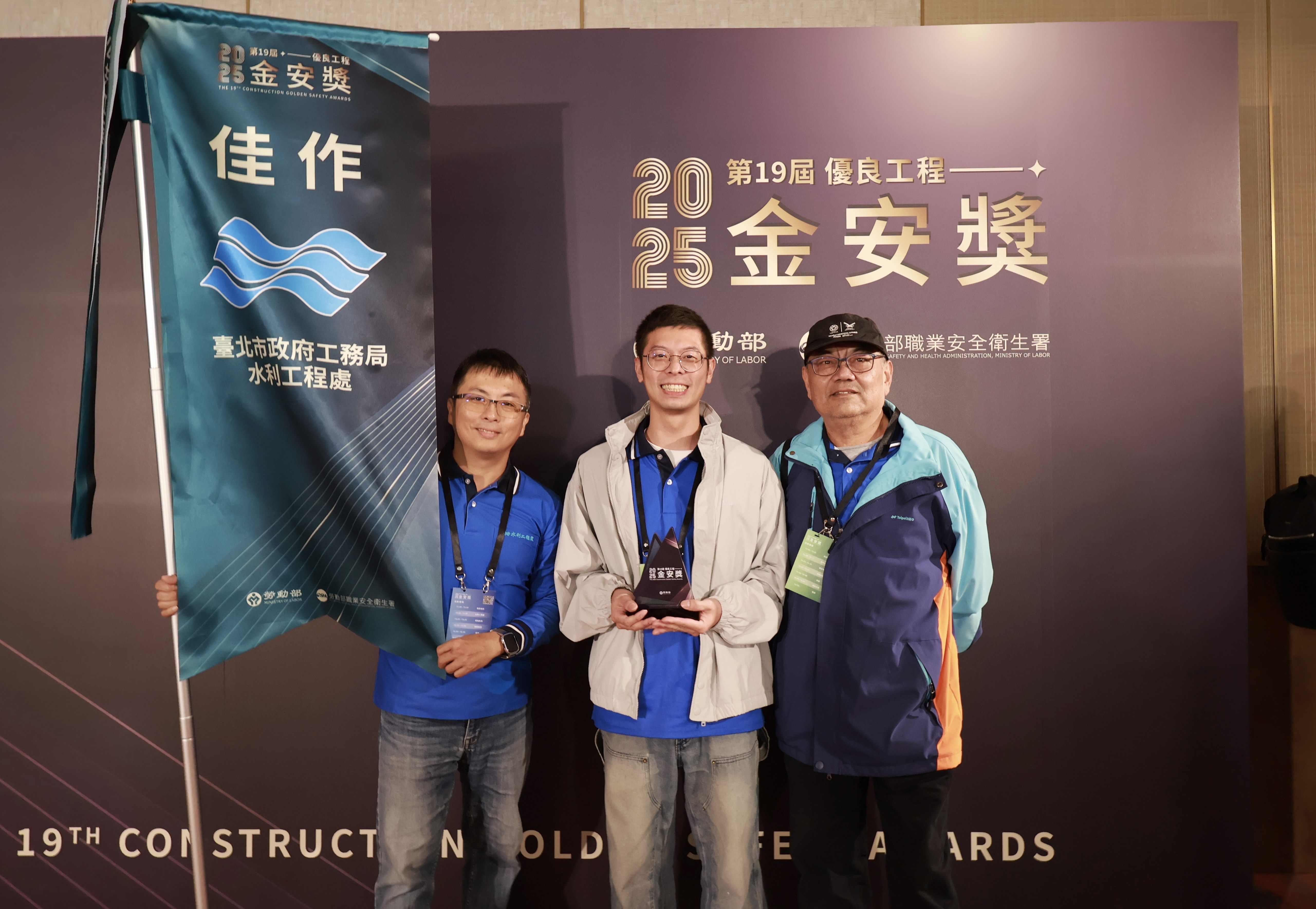 行政院勞動部主辦的114年「第19屆推動職業安全衛生優良工程金安獎」今天(11/26)頒獎,北市水利處推動的「大龍抽水站擴建站新建工程」,榮獲佳作肯定! 充分肯定水利處在施工品質與職業安全的卓越表現,展現水利處致力於提升公共工程品質與職業安全衛生水準的理念。