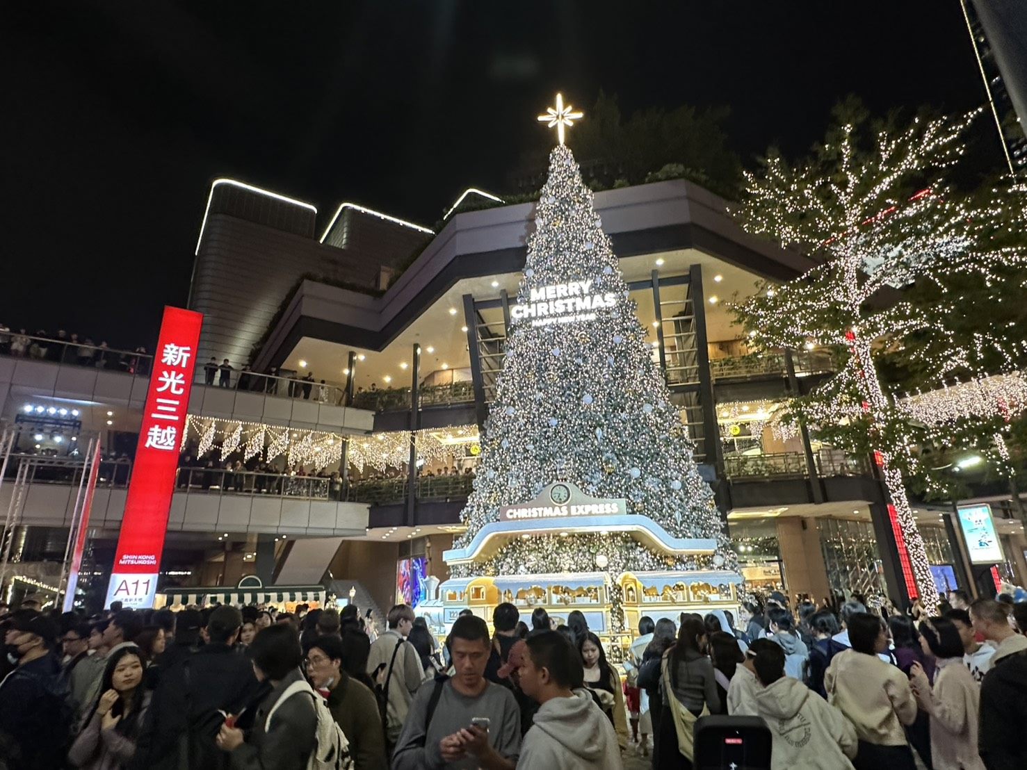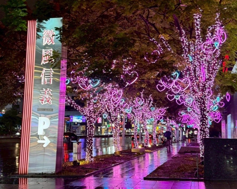 如信義百貨-新光三越百貨信義新天地打造高達20米的「傳遞幸福之樹」,結合超過15萬顆燈泡閃爍點綴,還有「星願特快車」環繞主樹,搭配每15分、45分小秀及每30分、整點大秀,累計共1,300場「飄雪聲光秀」,瀰漫浪漫絢麗氛圍,並於信義區百貨空橋點亮閃耀燈飾。