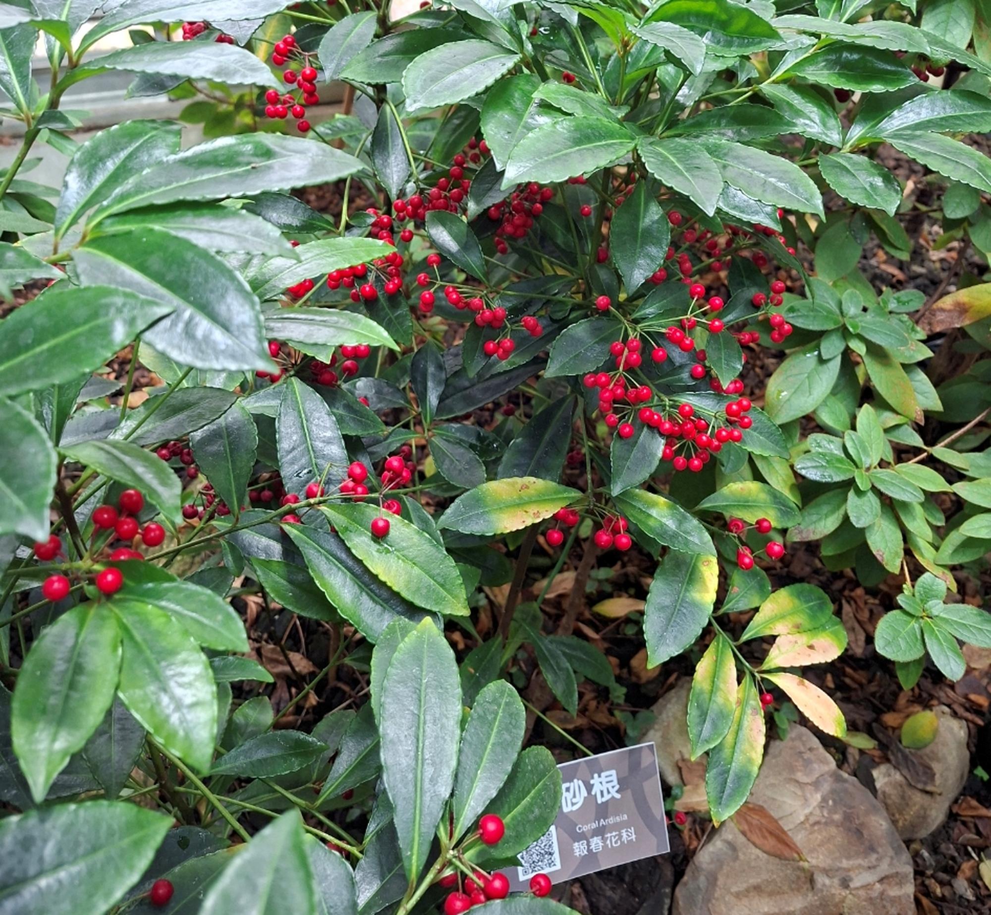 「硃砂根」名稱源自其藥用根部,根皮上帶有紅色硃砂斑點,屬常綠灌木,夏季開花,花謝後將隨即結出紅色圓果,果期冬季延續至春季。農曆春節期間,紅色系植物象徵富貴與喜氣「萬兩」的名稱取自日本園藝界分類方式,果實數量較少、植株矮小的紫金牛稱為「十兩」,果實稍多的百兩金稱為「百兩」,而紅果金粟蘭則被稱為「千兩」,因此果實繁多、色澤鮮紅的硃砂根,自然成為象徵富足的「萬兩」。硃砂根耐陰性強,廣泛用於中、日式傳統庭園或陰暗的大樓中庭、門廳等地點作為景觀配置用。無論搭配景石、叢植,或作為矮籬,都能為空間增添層次與生氣。