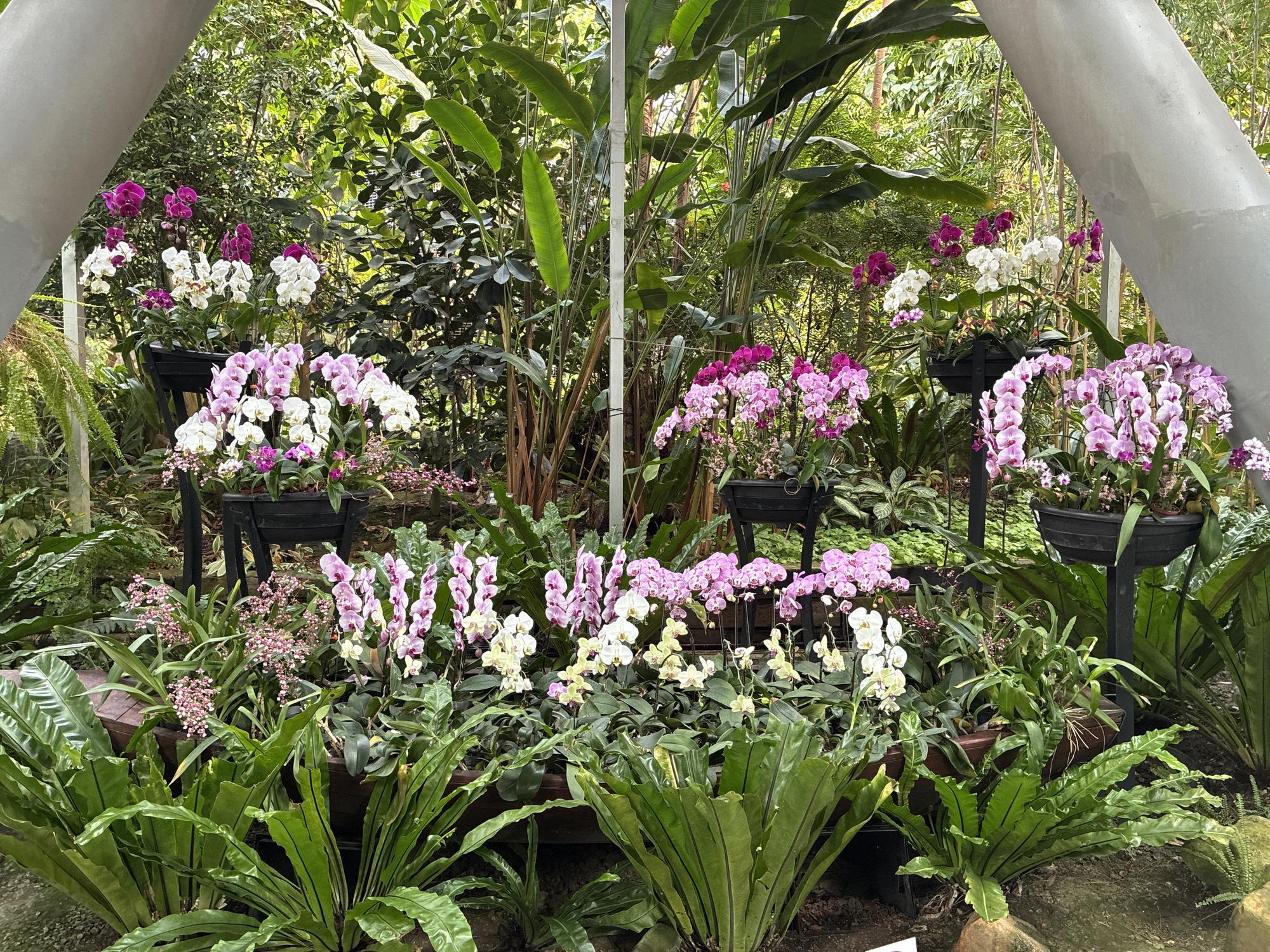 館內還有多款年節人氣植物同時亮相,提供豐富視覺饗宴!鮮紅的火鶴花,苞片宛如火焰與愛心,象徵熱情、祝福與鴻運當頭,為新年點燃一波波喜氣。好運「旺來」的鳳梨以空氣鳳梨形式在園區現身,懸掛生長的姿態,象徵福氣從天而降、好運一路高飛,是新春居家佈置的熱門選項;而蘭花及蕨類植物區中,蝴蝶蘭優雅盛開,花期長且容易照顧,象徵幸福長久,能從除夕一路陪伴到元宵,讓臺北典藏植物園洋溢著迎春納福的溫暖年味。