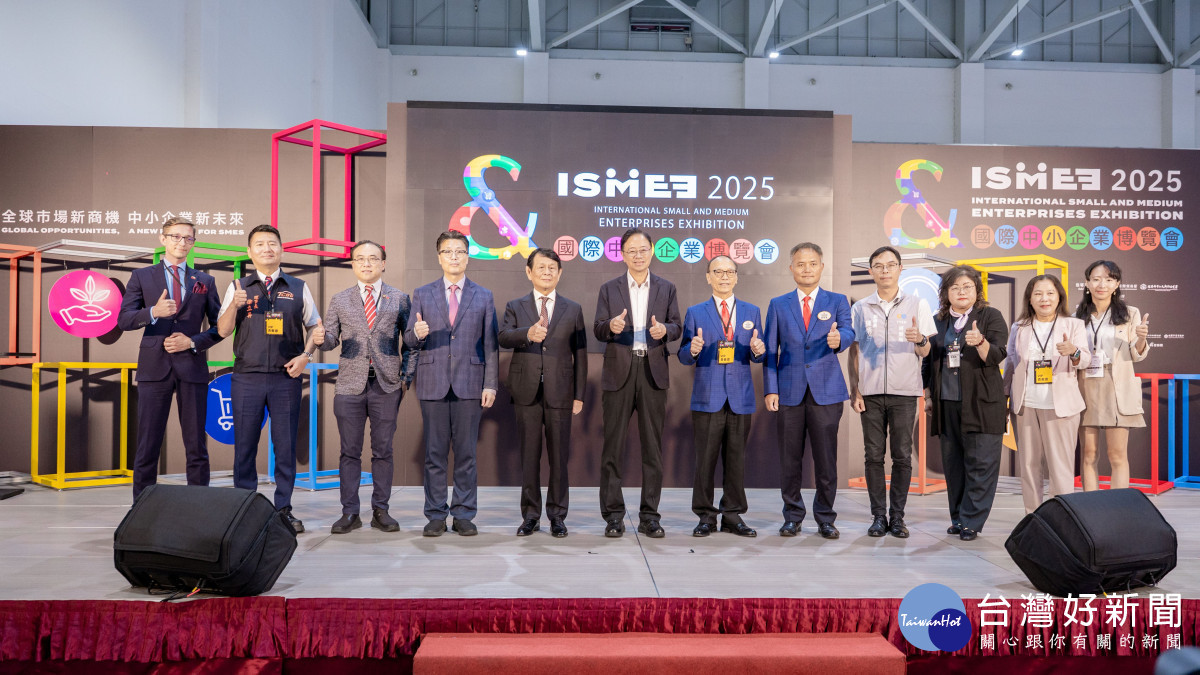 桃園市長張善政出席「2025國際中小企業博覽會」 與貴賓合影。