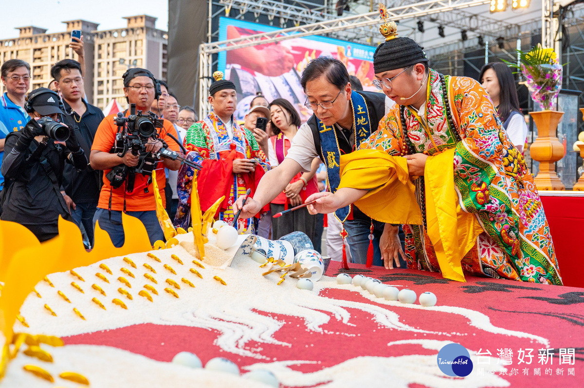 桃園市長張善政27日下午出席「2025土地公民俗藝術節」主獻大典,以三獻禮及450公斤白米打造的「米龍」點睛儀式,展現傳統工藝與宗教藝術的融合。張市長表示,土地公信仰彰顯華人社會對土地與自然的敬畏與感恩之情,每年桃園都會舉辦全臺最具規模的「土地公民俗藝術節」,今(114)年已邁入第18屆,活動規模再創新高,來自全臺各地及海外的土地公神尊,從去(113)年的203尊大幅增加至266尊,已成為宗教文化的重要交流平台。