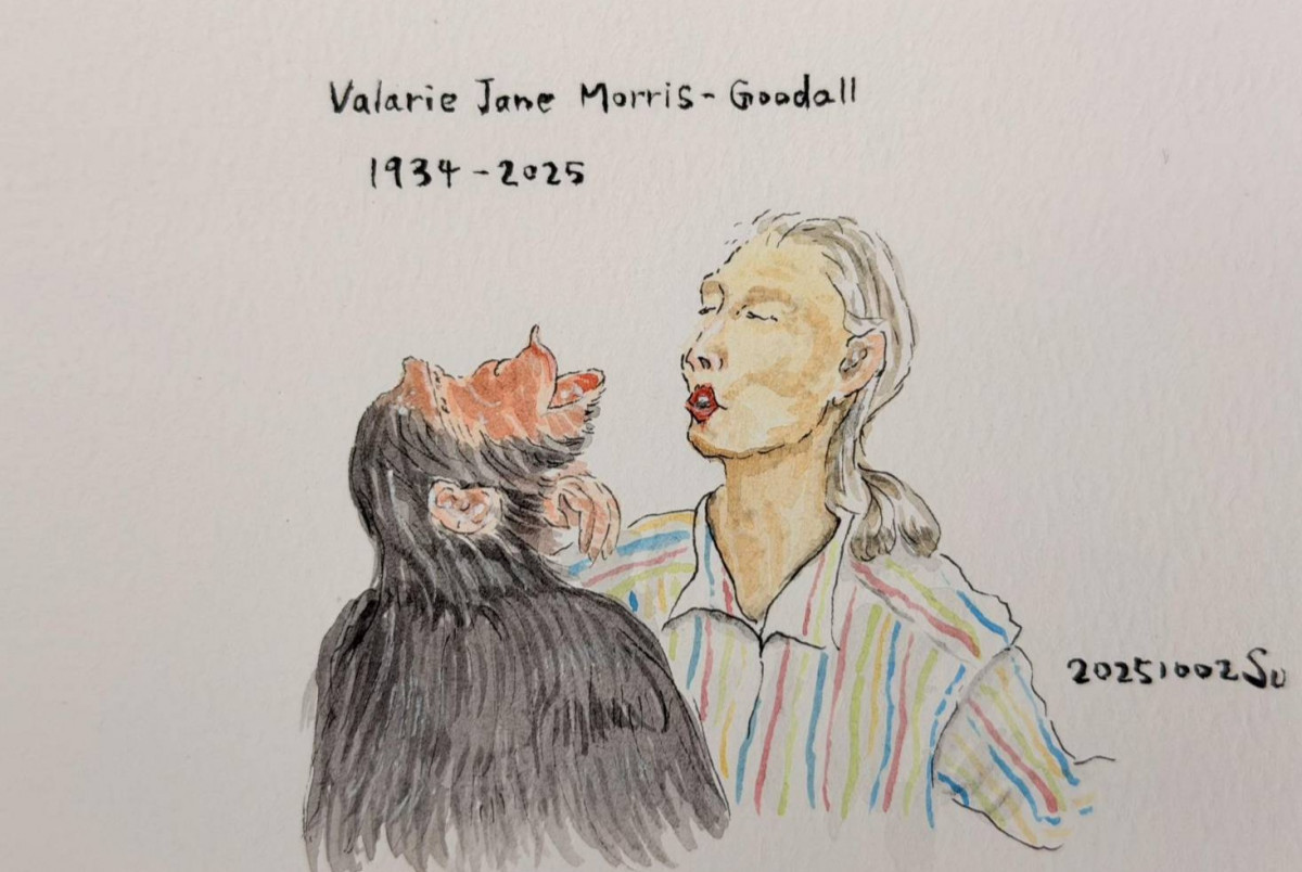 英國知名動物學家珍古德(Jane Goodall)於本週辭世,享壽91歲。桃園市副市長蘇俊賓在臉書發文,並親手繪製紀念明信片,追憶這位對他影響深遠的環境運動先驅。