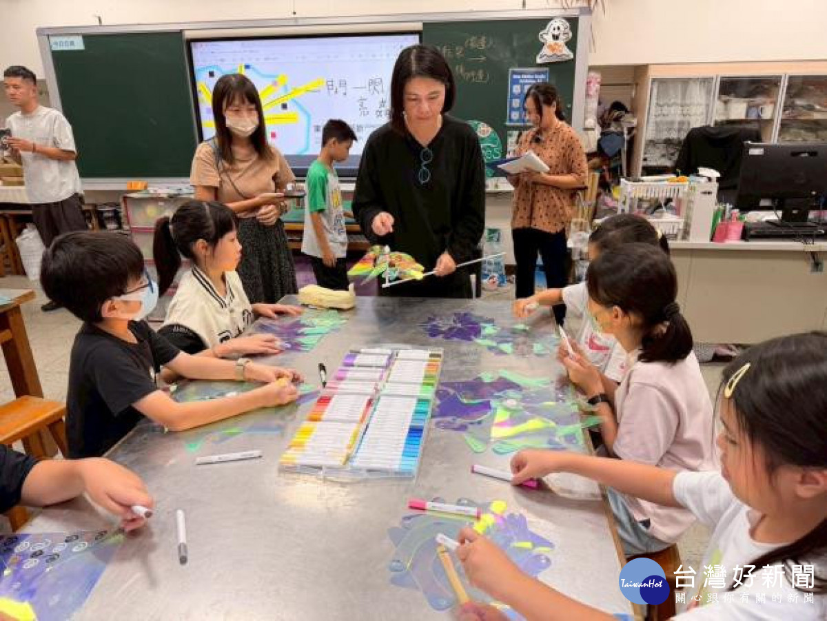 文化局指出,共創課程分為「觀察」、「創作」與「命名」三個階段,啟發學童將生活中的想像化為藝術。孩子們在土星燈球與風車上揮灑色彩,親手編織竹燈籠,創作出閃耀的《亮晶晶小怪獸》,並在作品上寫下屬於自己的願望。當夜幕降臨,竹籠燈、星球燈、風車燈與閃亮燈片一一亮起,孩子的夢想也隨風閃爍,在東興圳匯成一條溫柔的星河。