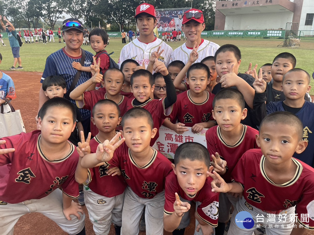 頂新和德文教基金會今年同樣邀請公益夥伴味全龍球星南下力挺,當郭天信和李致霖一踏入球場立刻引起現場小球員熱烈迴響,不僅拉近小球員與職業球員的距離,讓孩子們看見努力與堅持能帶來的可能性。其中,頂新和德文教基金會長期支持的金潭國小棒球隊,此次身為高雄地主隊,隊中多數球員來自高關懷家庭,教練團身兼數職不僅協助訓練,也在生活上給予貼心照顧,金潭國小2024年闖進四強,本屆賽事在家鄉出賽孩子們在球場上展現活力、全隊士氣高昂,展現自信與團隊精神,賽後,郭天信與高雄在地人李致霖也特地和金潭國小球員合影留念,並以鼓勵他們持續努力,在棒球道路上不斷積累能量。