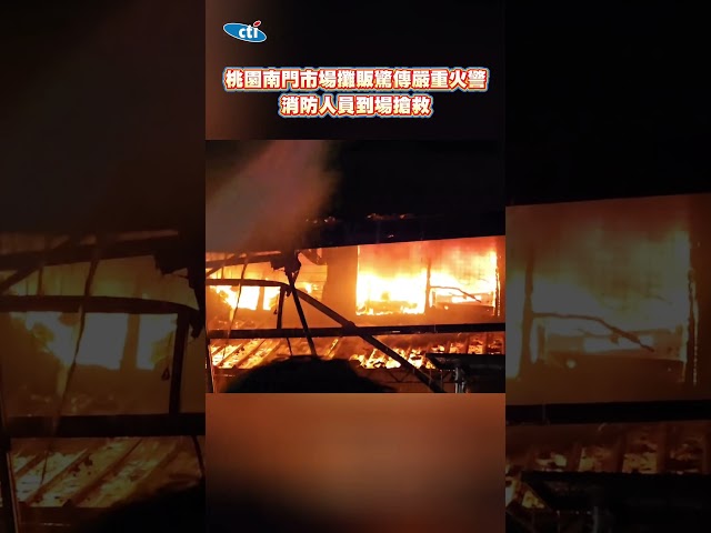 ![影/桃園南門市場攤販突竄火舌 消防人員全力搶救]()