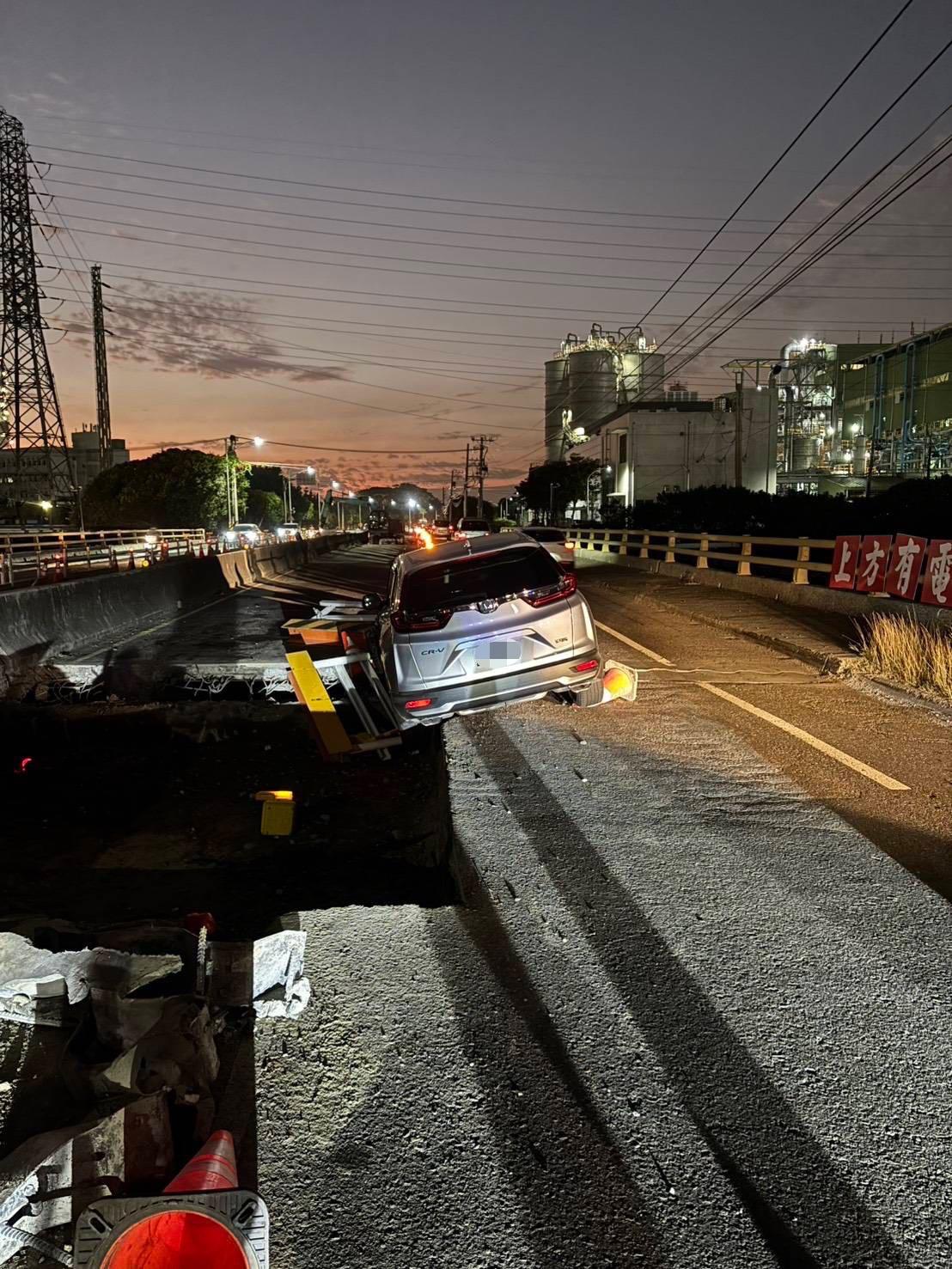 ![影/林園台17伸縮縫施工 車撞護欄陷坑駕駛受傷]()