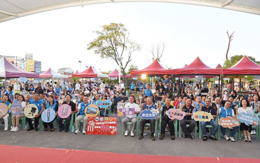 【互傳媒/記者 林學均/苗栗 報導】苗栗市公所規畫「行尞客庄‧食光集」活絡商圈振興經濟系列,自8月23日起一連舉辦4場市集及摸彩活動,市長余文忠在9月27日最終場晚會中,邀請縣長鍾東錦與來賓出席並抽出部分得獎的幸運兒,為活動掀起一波波高潮。鍾東錦樂見後火車站、火車頭園區及英才夜市被襯托得更熱鬧,期待逐漸打響知名度進而媲美像逢甲夜市或遊客如織的老街,帶動苗栗的觀光產業。