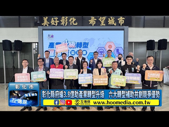 【互傳媒/記者 林明佑/彰化 報導】為鞏固中小企業競爭優勢,彰化縣政府於今(13)日舉行「彰化縣產業升級轉型逗相挺」記者會,彰化縣長王惠美宣布提供新台幣3.8億元預算,推動產業轉型升級。本計畫精準鎖定產業「實體轉型」痛點,針對一般工廠、納管及特登工廠提供「貸款利息補貼」、「碳盤查」、「智慧儲能」、「低碳智慧化設備」、「私設消防栓」、及「屋頂太陽光電」等項目實質補貼,單一工廠最高補助可達200萬元。計畫將於115年3月1日正式開放受理,依序審查,額滿為止。