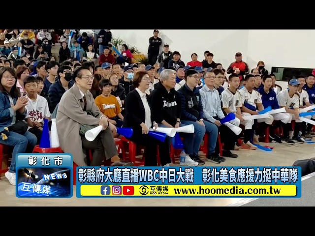 【互傳媒/記者 林明佑/彰化 報導】2026年世界棒球經典賽(WBC)進入預賽關鍵戰役,彰化縣政府於今(6)日晚間在縣府中庭舉辦「中日大戰」同步直播活動。縣長王惠美與數百名鄉親齊聚一堂,透過大螢幕為遠在東京巨蛋出賽的中華隊加油打氣。