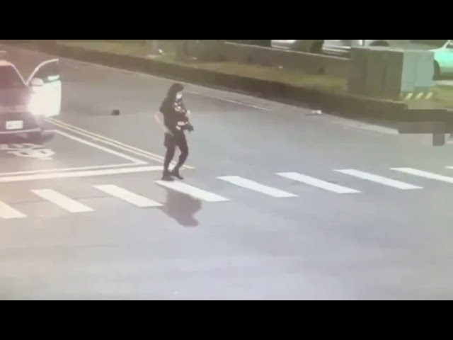 ![外籍男無厘頭狠踹警車後逃逸 警百米狂追強勢壓制逮捕]()