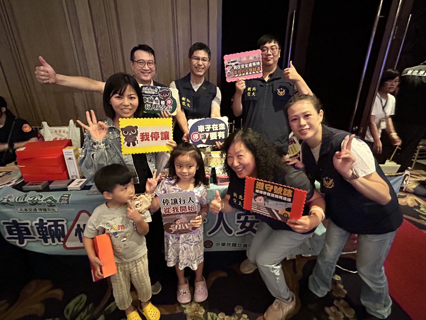 新北警結合本次「114年原住民族親子活動」,向與會原民同仁及眷屬傳達「人本交通-停讓文化」及「車輛慢看停,行人安全行」之正確觀念,由現場玩樂互動及搭配宣導標語相輔相成,以寓教於樂的形式帶給孩童最直觀的視覺感受,留下對宣導內容深刻印象,擴大交通安全月宣導效果。