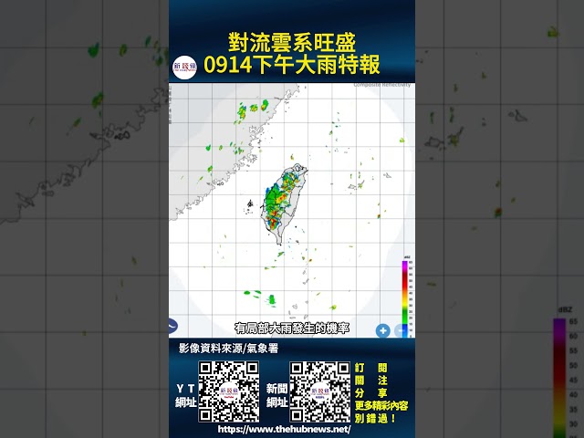 今天9月14日午後對流雲系發展旺盛,易有短延時強降雨,氣象署下午近16時許再度發出大雨特報,南投、嘉義以南地區及中部山區有局部大雨發生的機率,請注意雷擊、強陣風及溪水暴漲,山區慎防坍方及落石。