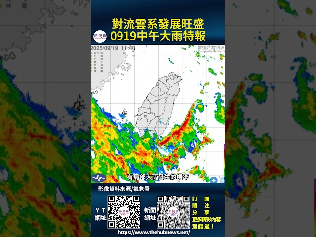 影音/對流雲系發展旺盛 0919中午大雨特報