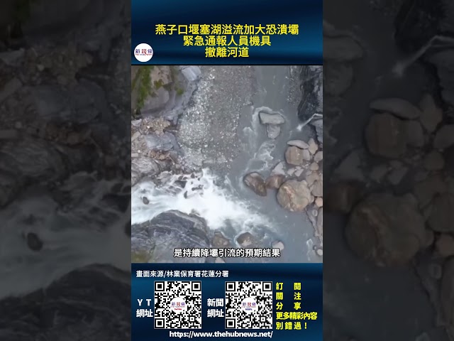 燕子口堰塞湖因連日降挖壩體,加上10月28日下午16時起,上游持續降雨,導致壩體原滲流處的水量擴大,並且進一步沖刷壩體,導致溢流加大,可能引發壩體破壞或潰決,造成立霧溪下游水位抬升!林業及自然保育署緊急通報,人員與機具不要進入河道,以免發生危險。