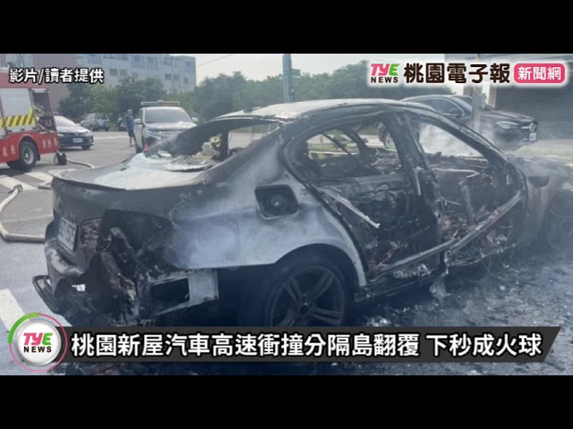 本文章來自《桃園電子報》。原文:【有片】桃園新屋汽車高速衝撞分隔島翻覆 下秒成火球