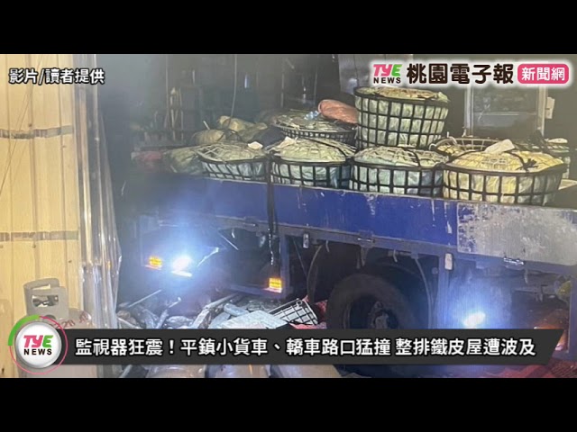 本文章來自《桃園電子報》。原文:【有片】監視器狂震!平鎮小貨車、轎車路口猛撞 整排鐵皮屋遭波及