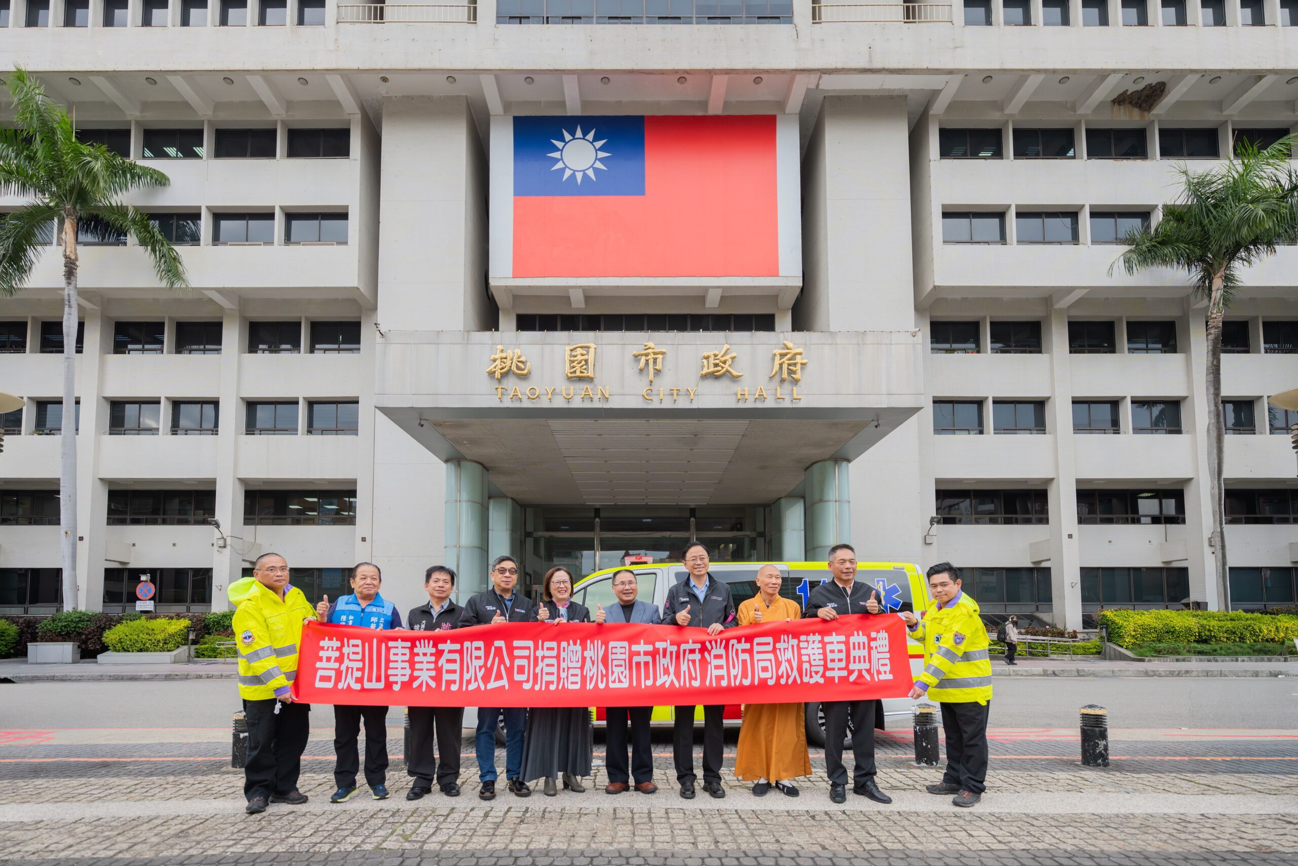 本文章來自《桃園電子報》。原文:菩提山事業寒冬送暖 捐130萬、救護車予桃市府
