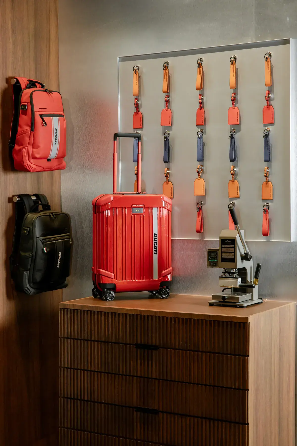 這次聯名系列涵蓋全鋁製登機箱、聚碳酸酯行李箱以及防水捲蓋後背包等單品,在視覺語言上並未刻意強化競速形象,而是延續 PIQUADRO 的克制比例與簡潔輪廓。Ducati 標誌性的紅色僅以適度點綴形式出現,使包款在城市、商務與旅遊等多場景中仍具高度適應性,呈現的是實際、好搭配、且具有辨識感的義式風格。