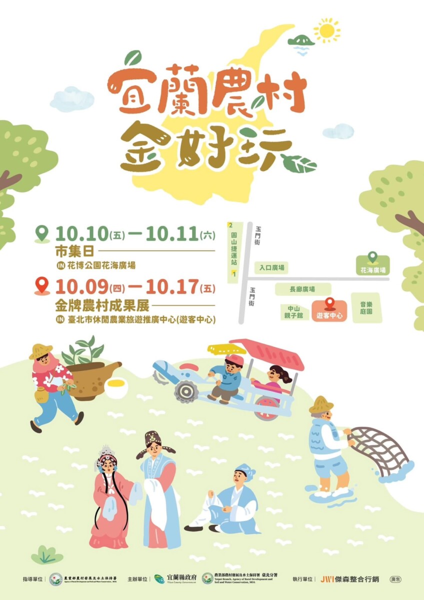 【記者 林明益/宜蘭 報導】雙十連假想好要去哪裡了嗎?今年不用過雪隧,也能盡情感受宜蘭農村的獨特魅力!由農村水保署臺北分署攜手宜蘭縣政府共同舉辦的「宜蘭農村金好玩」系列活動,將於10月9日至17日在臺北登場,結合靜態展覽與熱鬧市集,帶來宜蘭農村的特色美食、產業故事與好玩體驗。