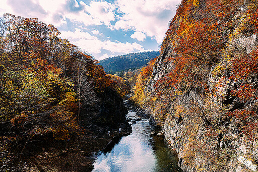 北海道定山溪素有札幌後花園之稱,擁有二見吊橋和秋葉纜車等賞景點,是觀賞豐平川溪谷秋日紅葉的溫泉勝地。圖片由 iStock 提供