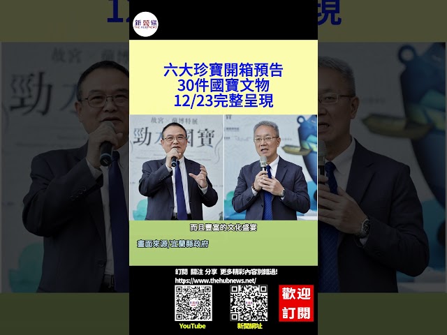 國立故宮博物院與宜蘭縣政府合作推出的年度文化鉅獻「勁水國寶—故宮x蘭博特展」,12月17日由代理縣長林茂盛與故宮院長蕭宗煌,開箱雙方精選的6件指標性文物,包括人氣國寶肉形石、游魚轉心瓶、玉鴨,以及宜蘭重要考古出土代表文物幾何印紋陶罐、骨質人形刀柄、狐狸狗陶偶,共同迎接這場跨時空與跨文化「勁水國寶」文物的到來,並且預告完整展覽內容將於12月23日盛大登場,共有30件珍貴文物要給大家「好看」。
